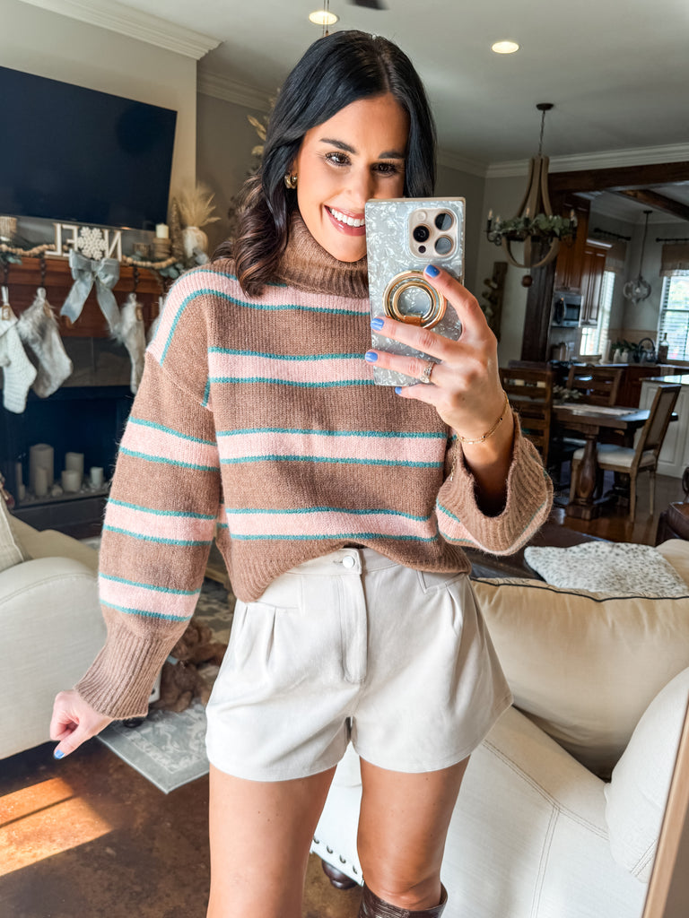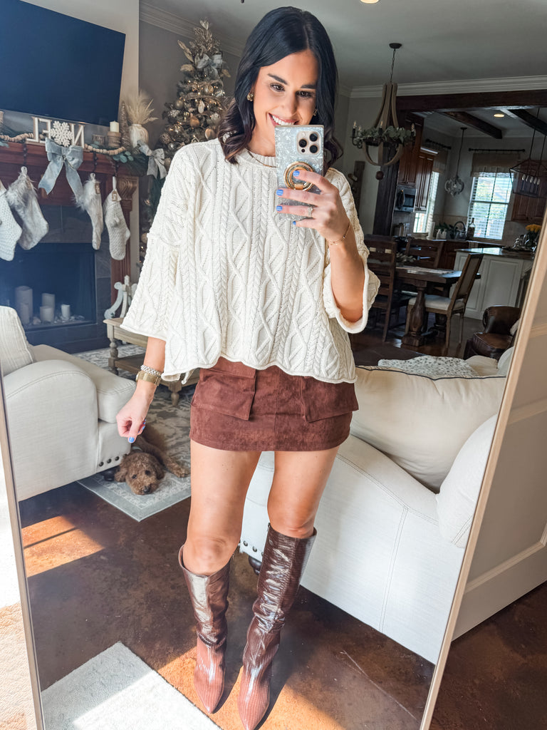 MOCHA OVERSIZED CABLE KNIT SWEATER