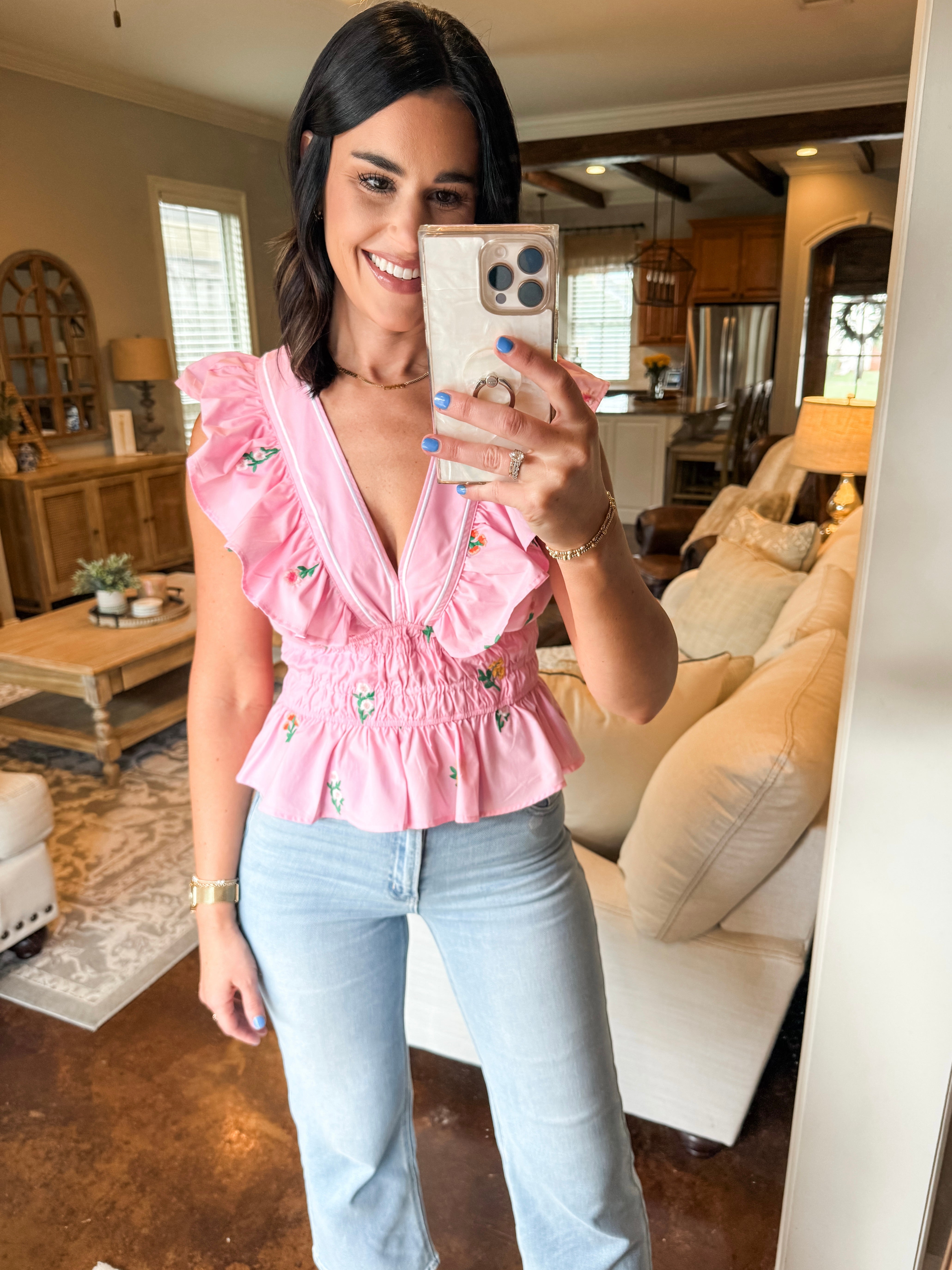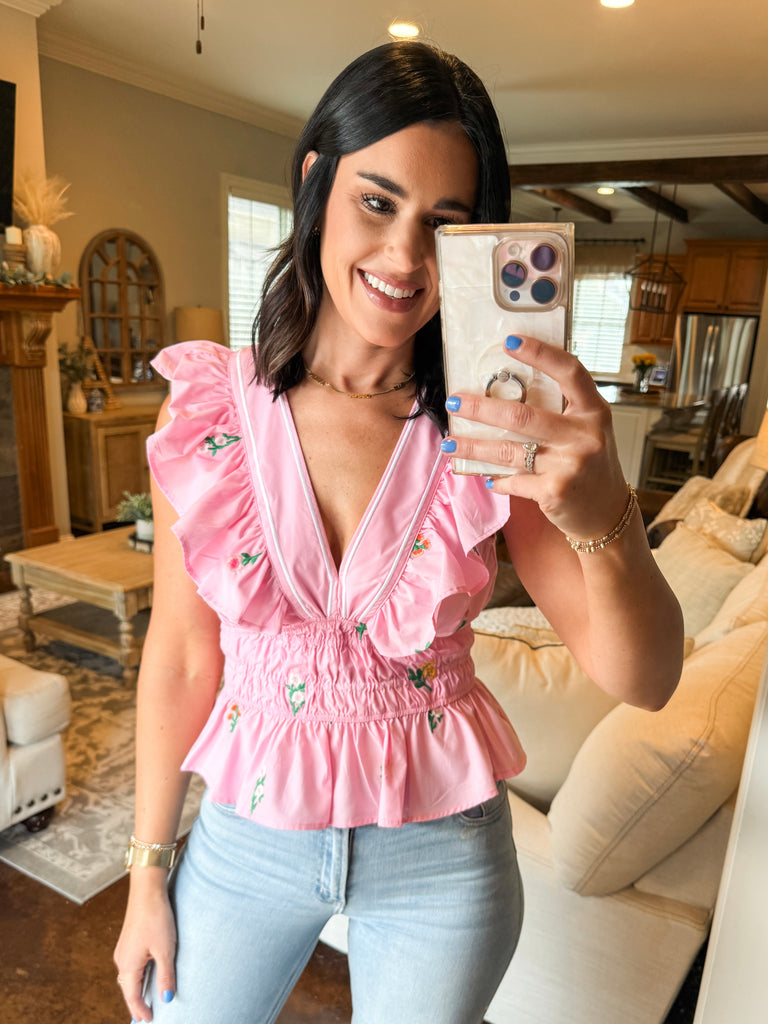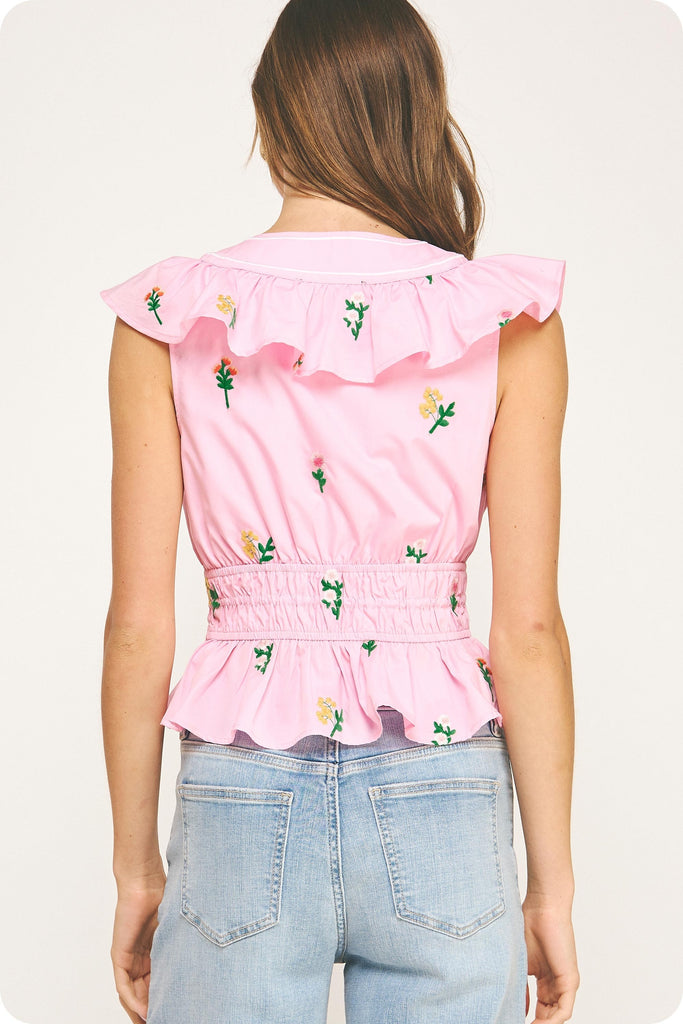 LIGHT PINK FLOWER EMBROIDERED TOP