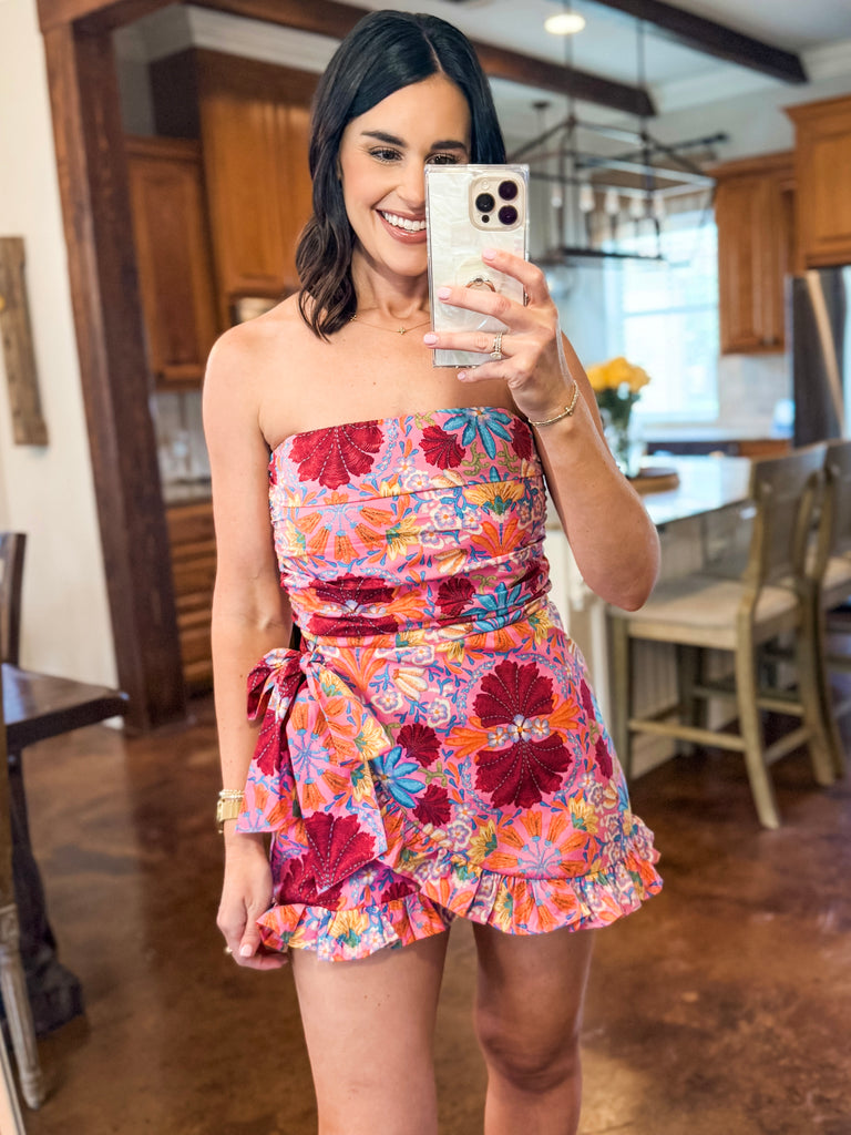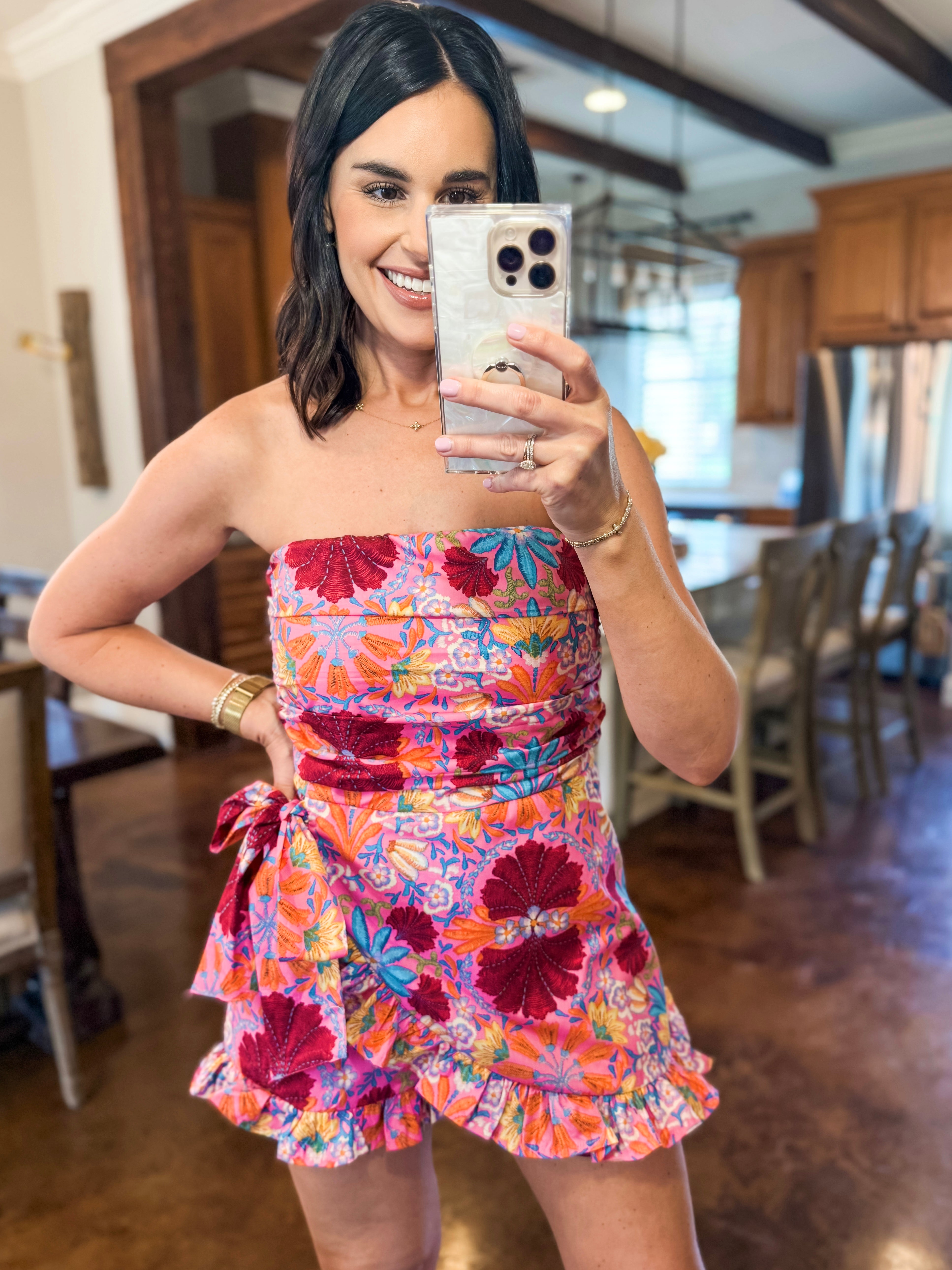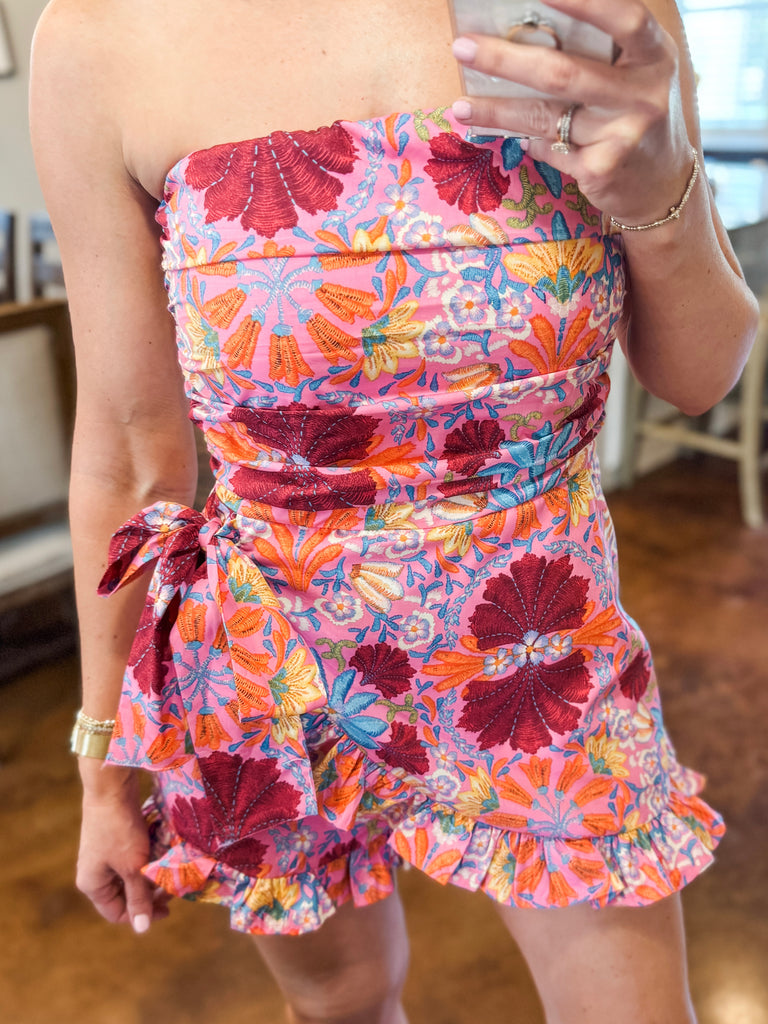 MULTI FLORAL STRAPLESS WRAP ROMPER