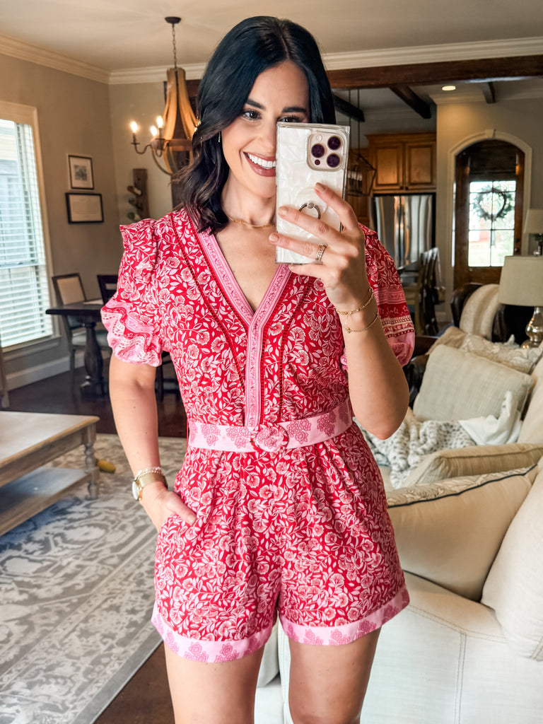 TAKE ME AWAY FLORAL BELTED ROMPER
