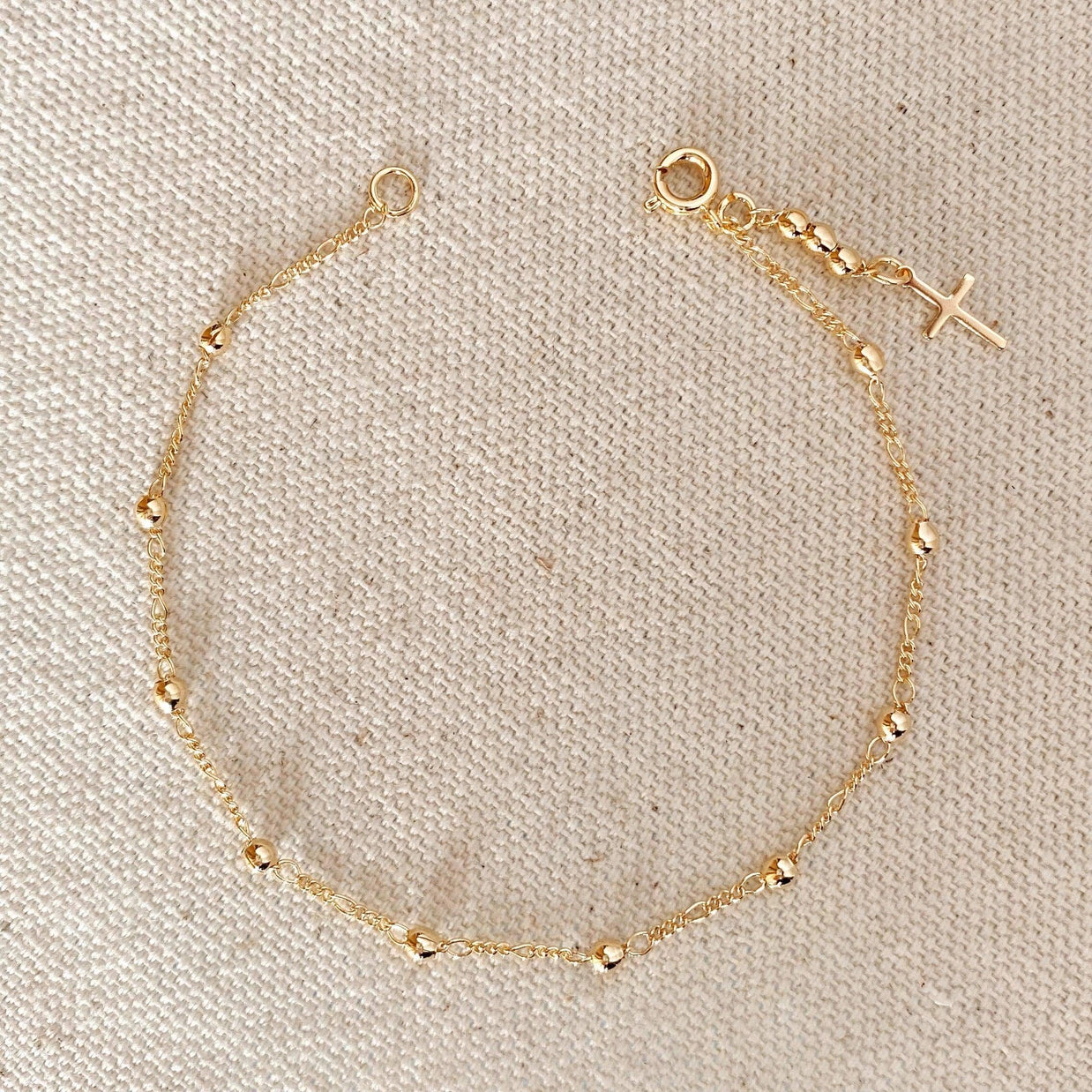 BEADED CROSS CHARM GOLD ROSARY BRACELET