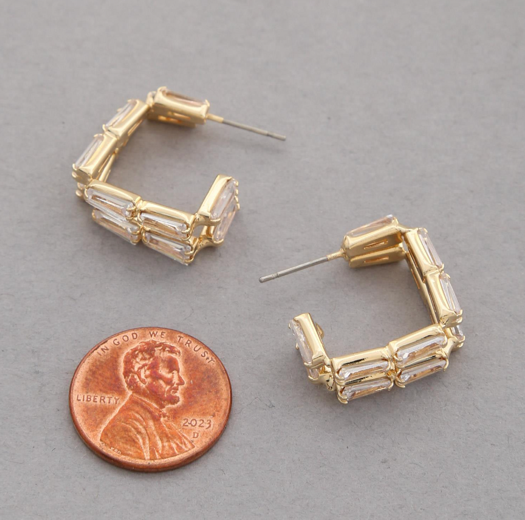 CZ DOUBLE HOOP GOLD DIPPED EARRING