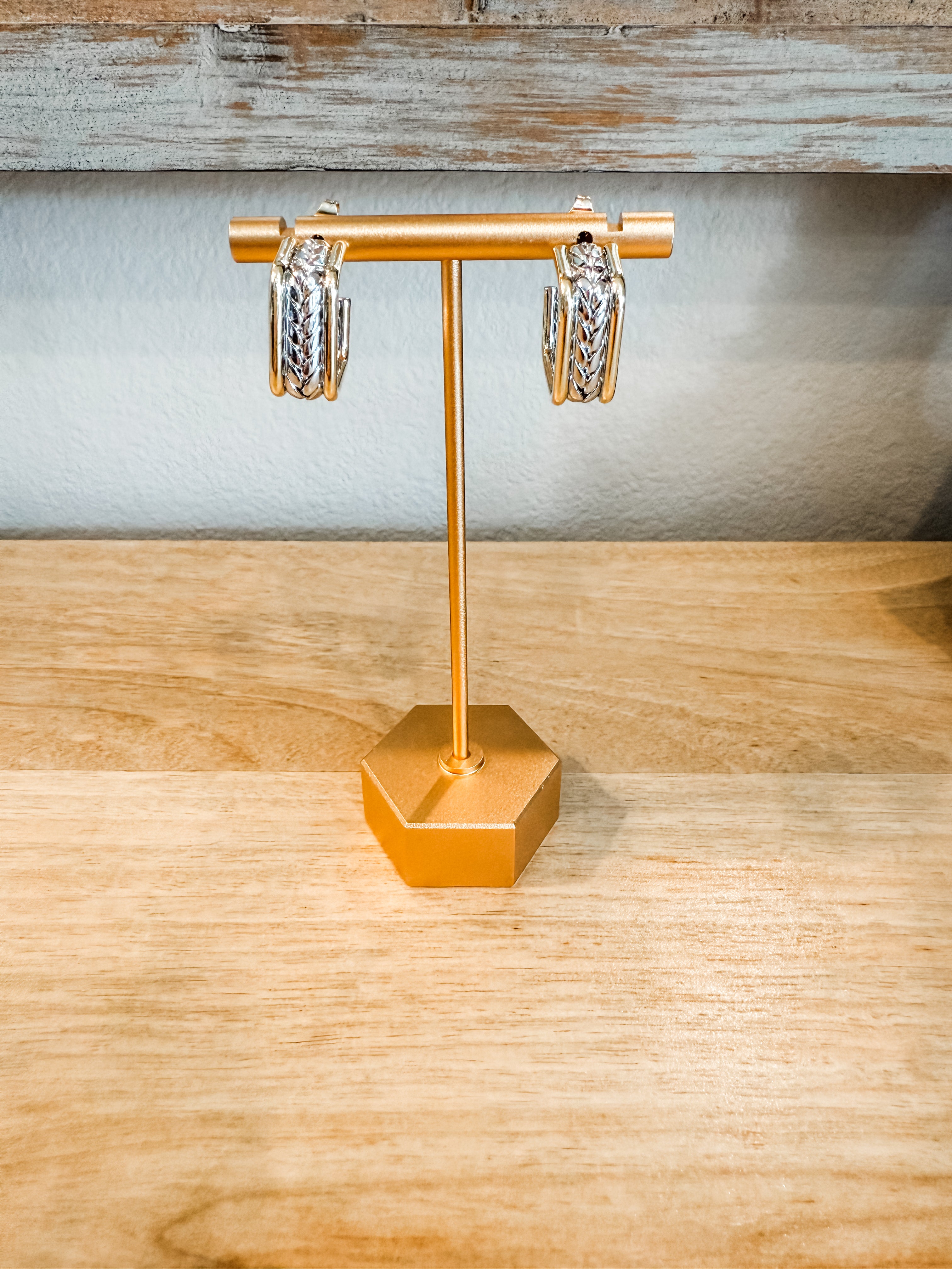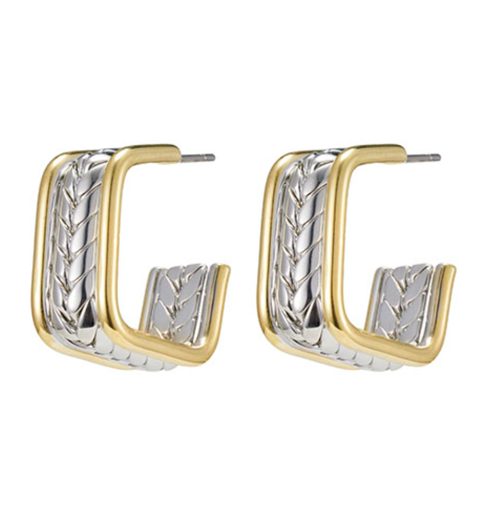 TWO TONE WHEAT LINK OPEN HOOP EARRING
