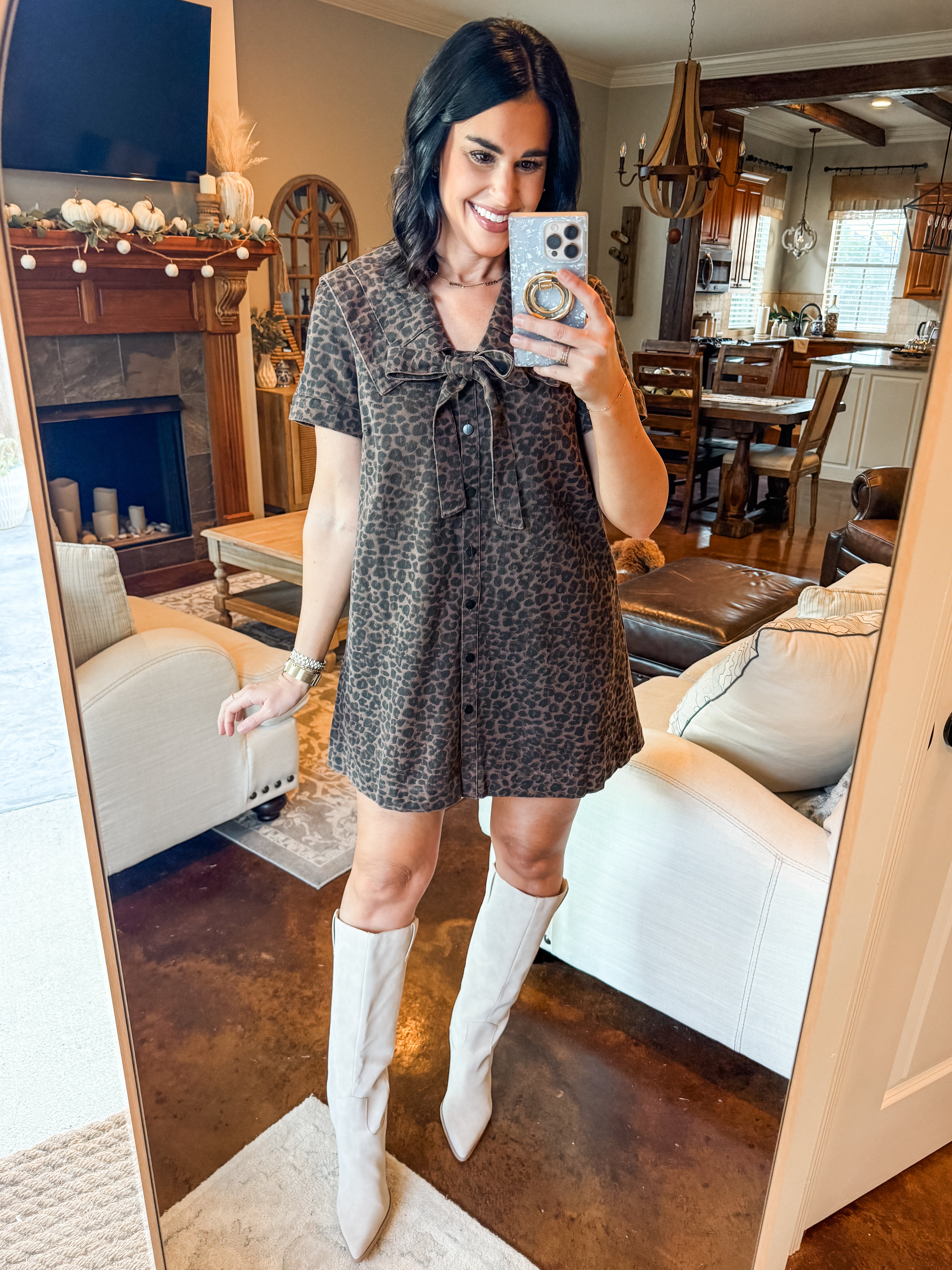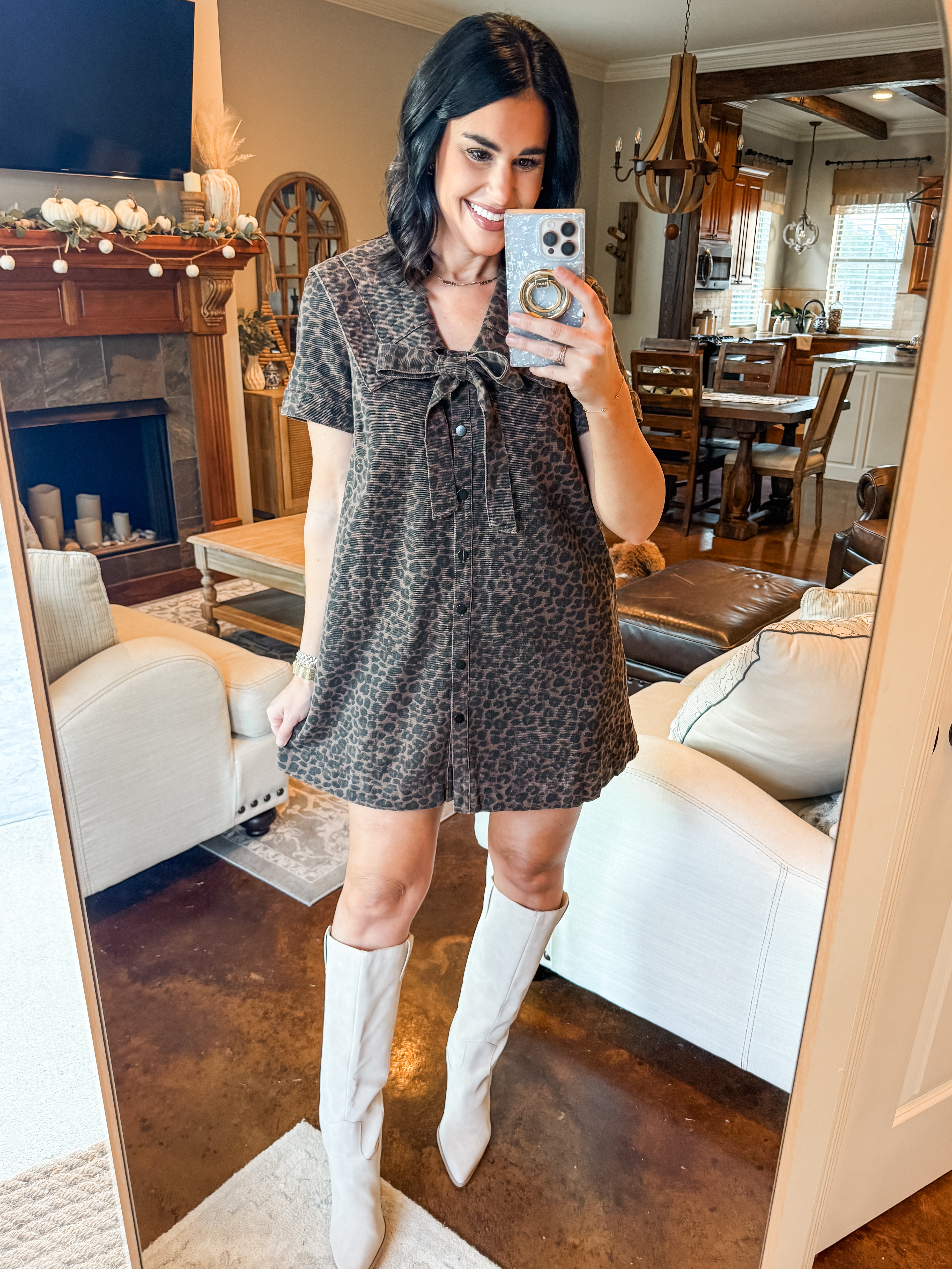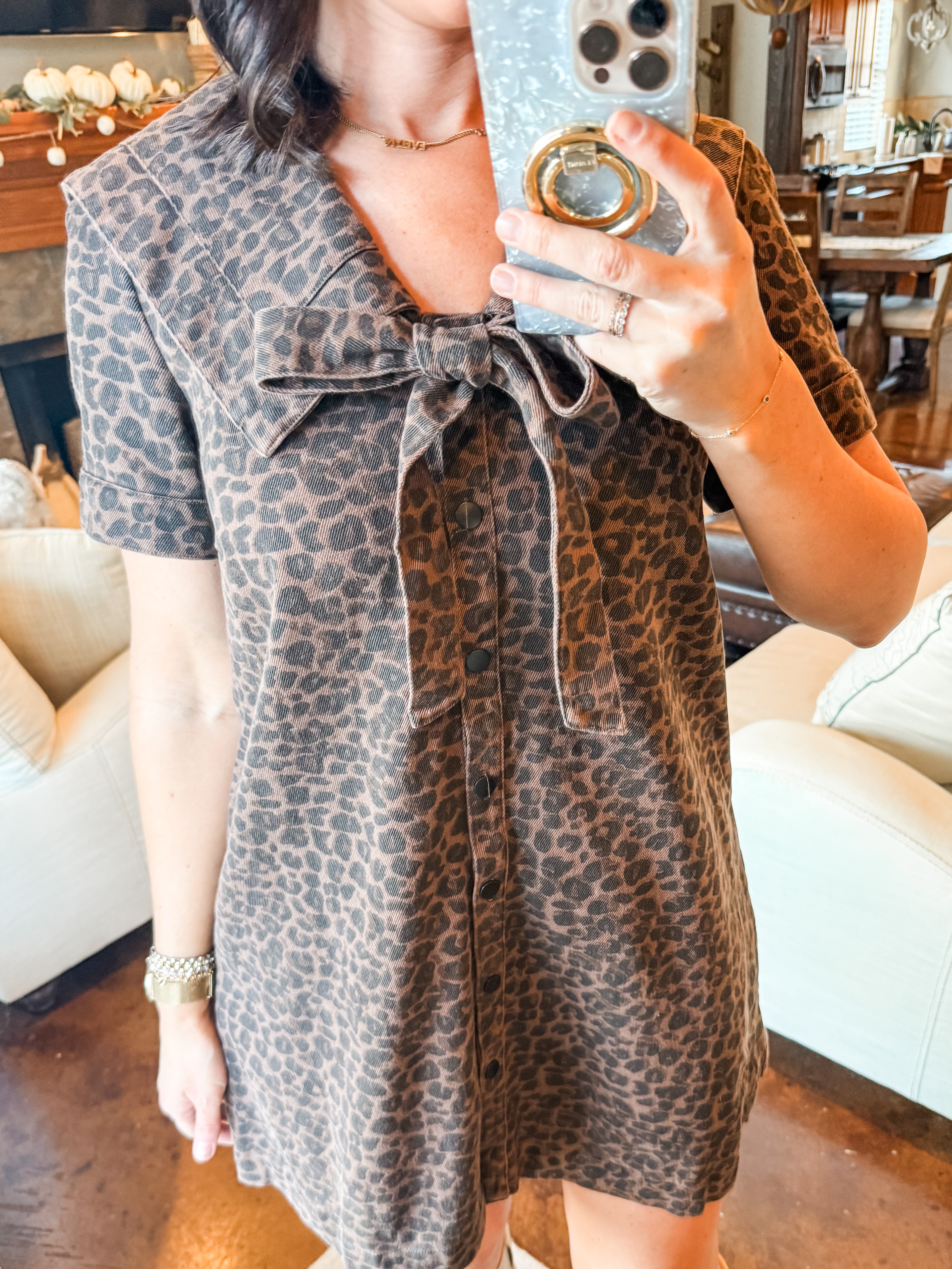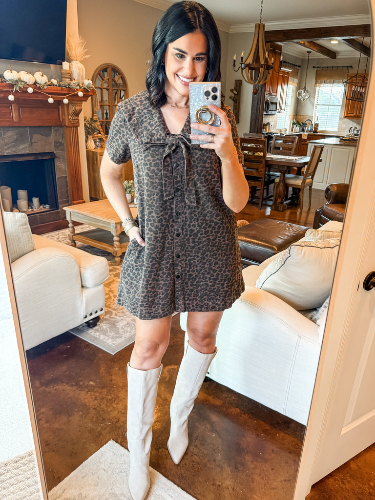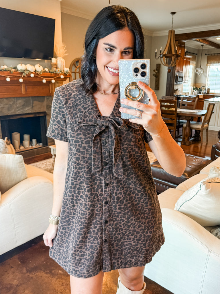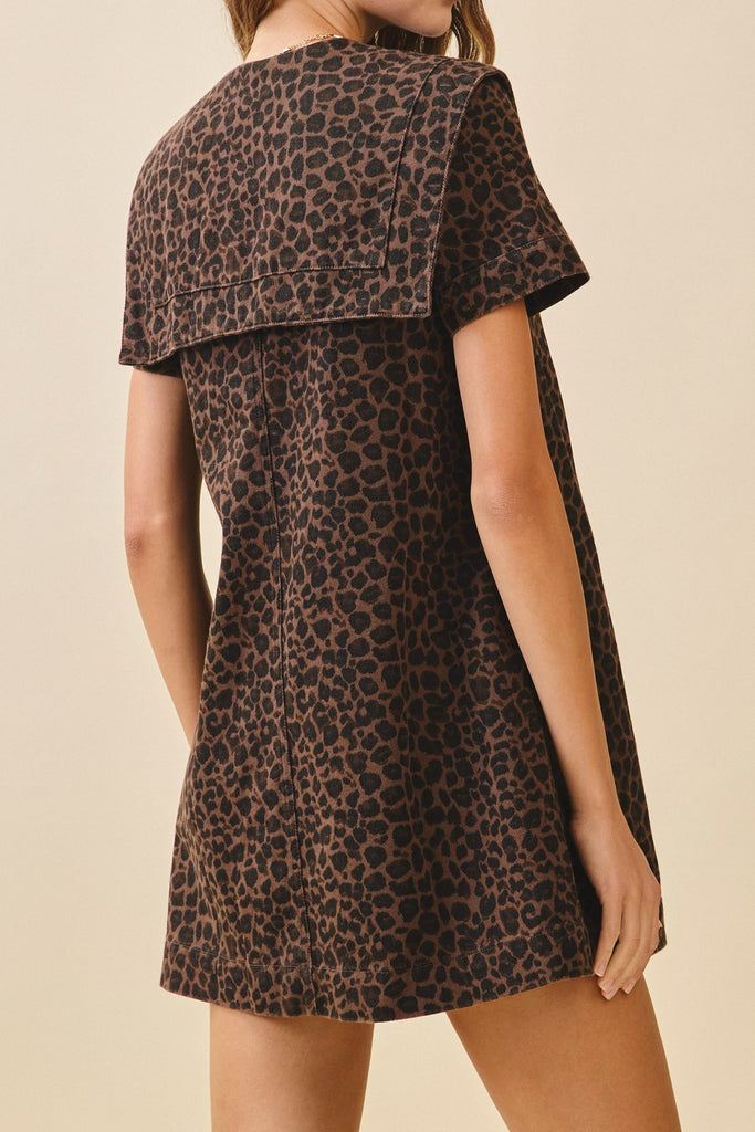 LEOPARD PRINT COLLARED DRESS