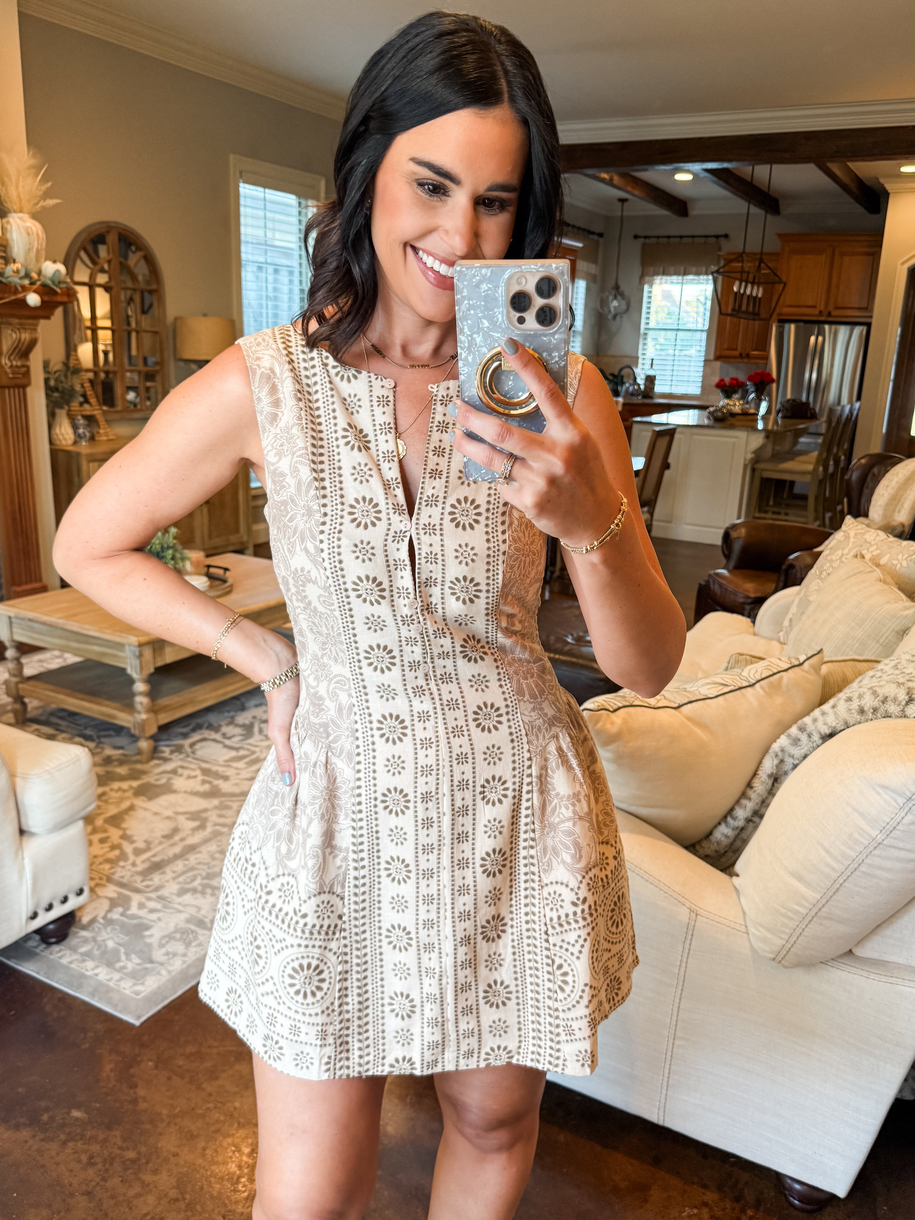 NATURAL PRINTED MINI DRESS