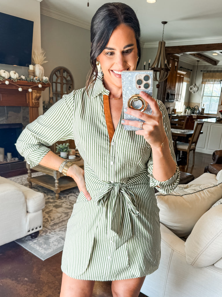 GREEN STRIPED LONG SLEEVE DRESS