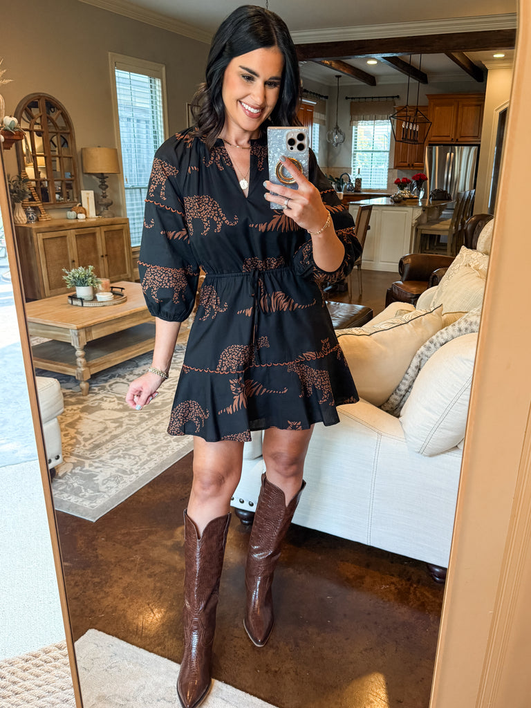 JUNGLE PRINT BLACK MINI DRESS