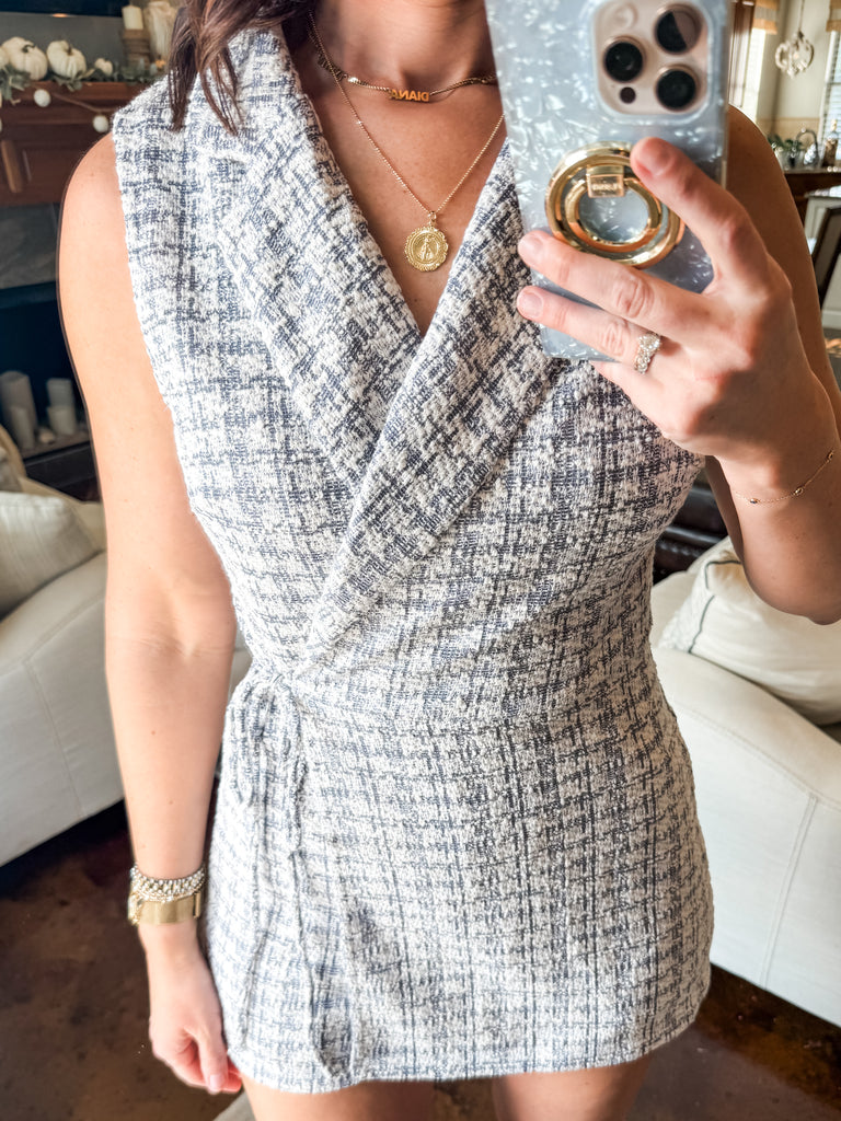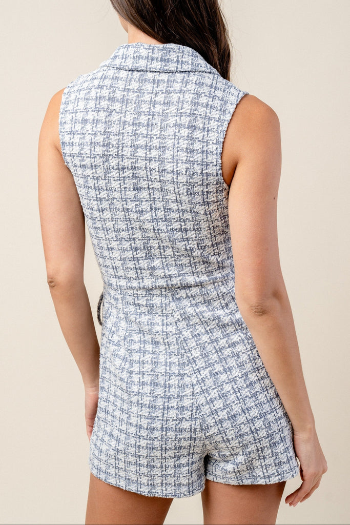BLUE TWEED BLAZER ROMPER