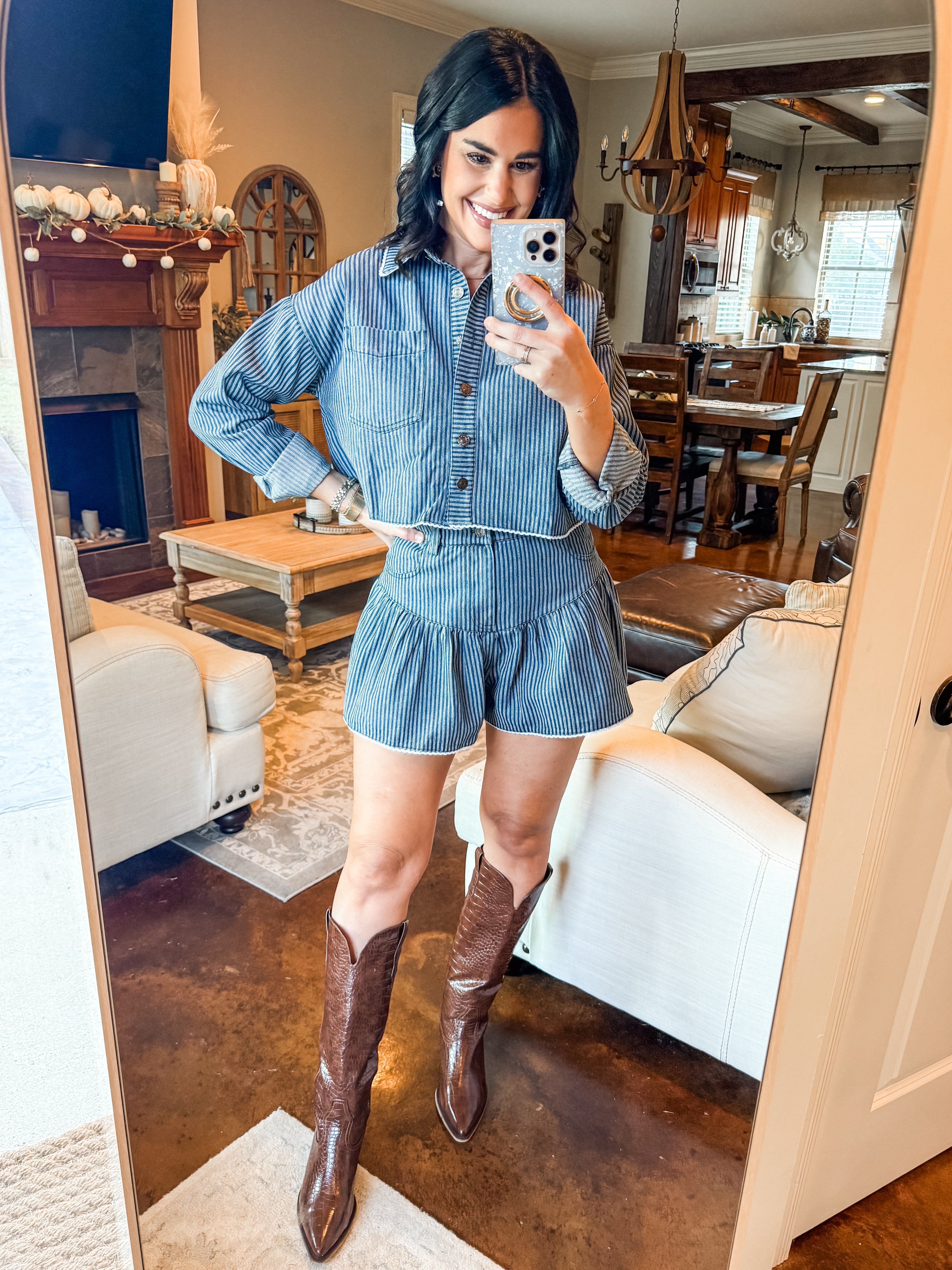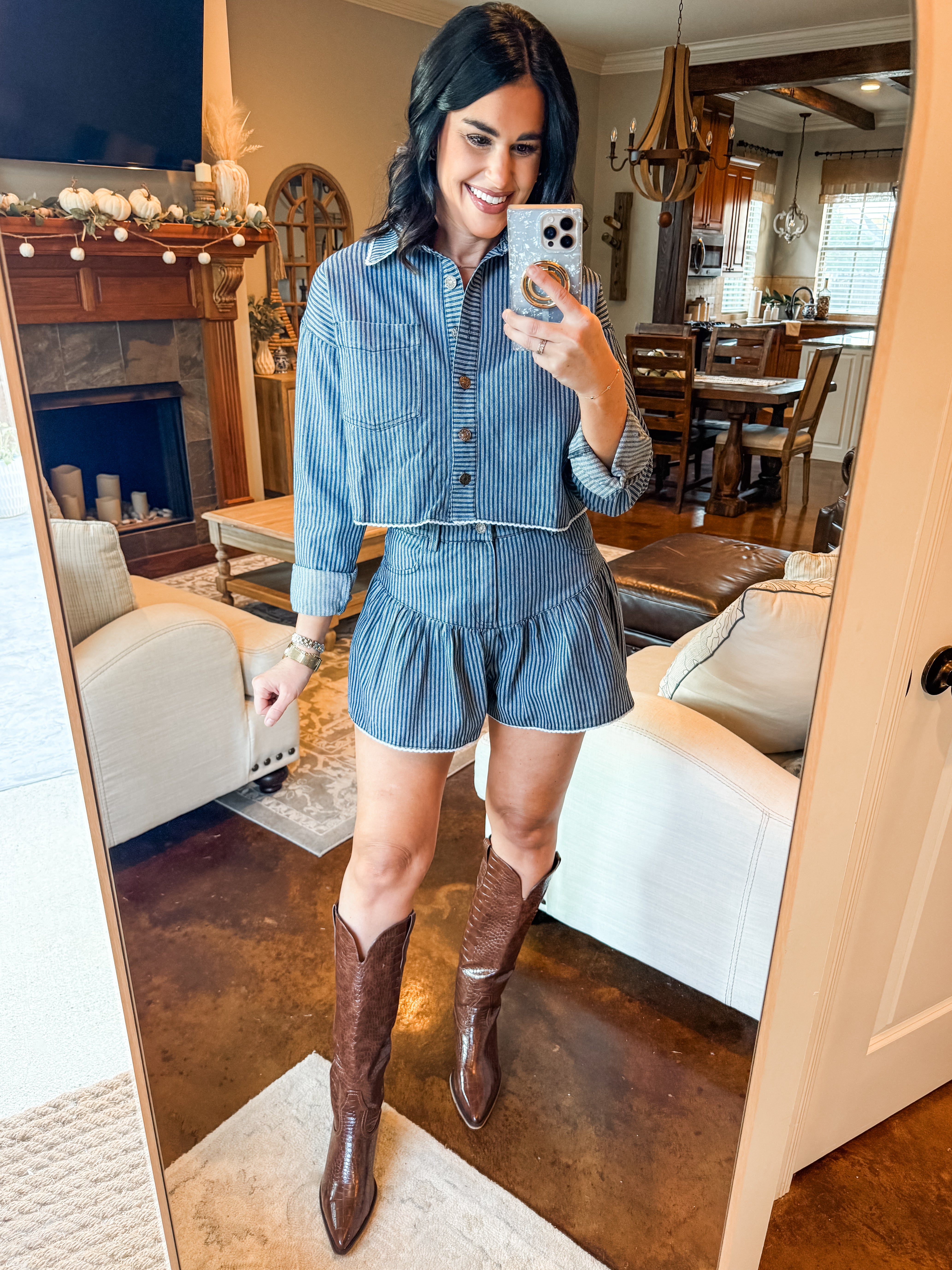 STRIPED DENIM SKORT SET