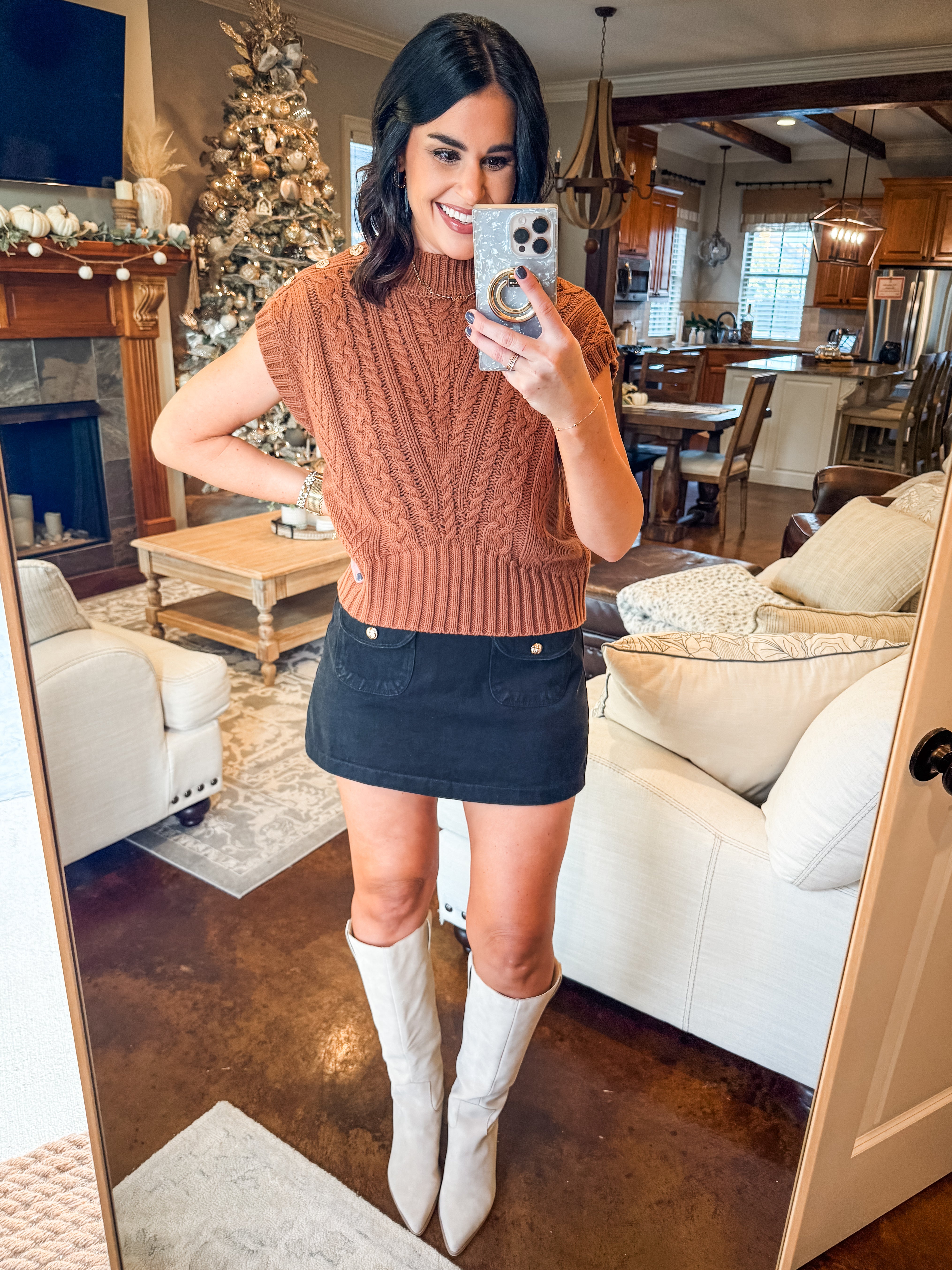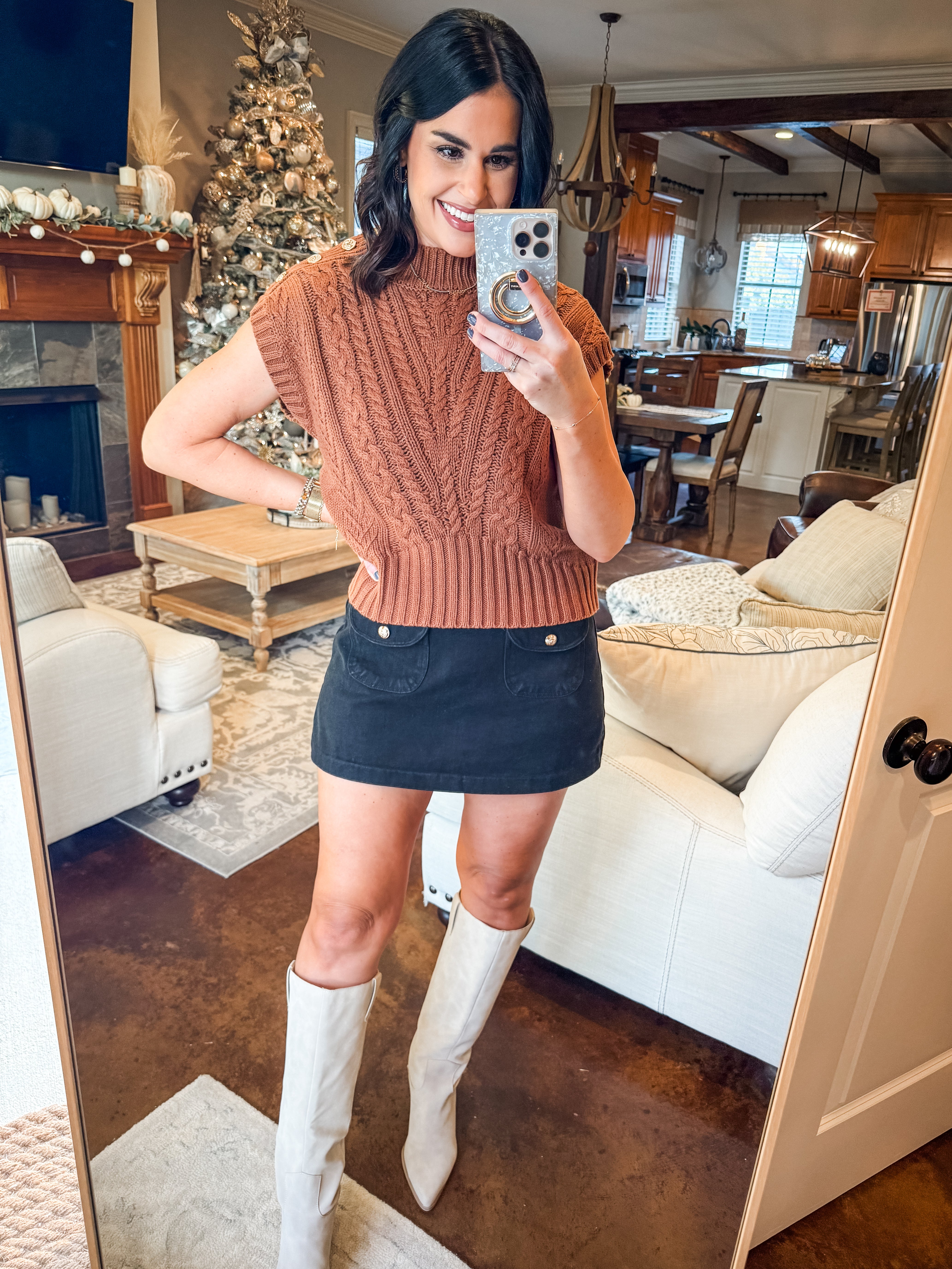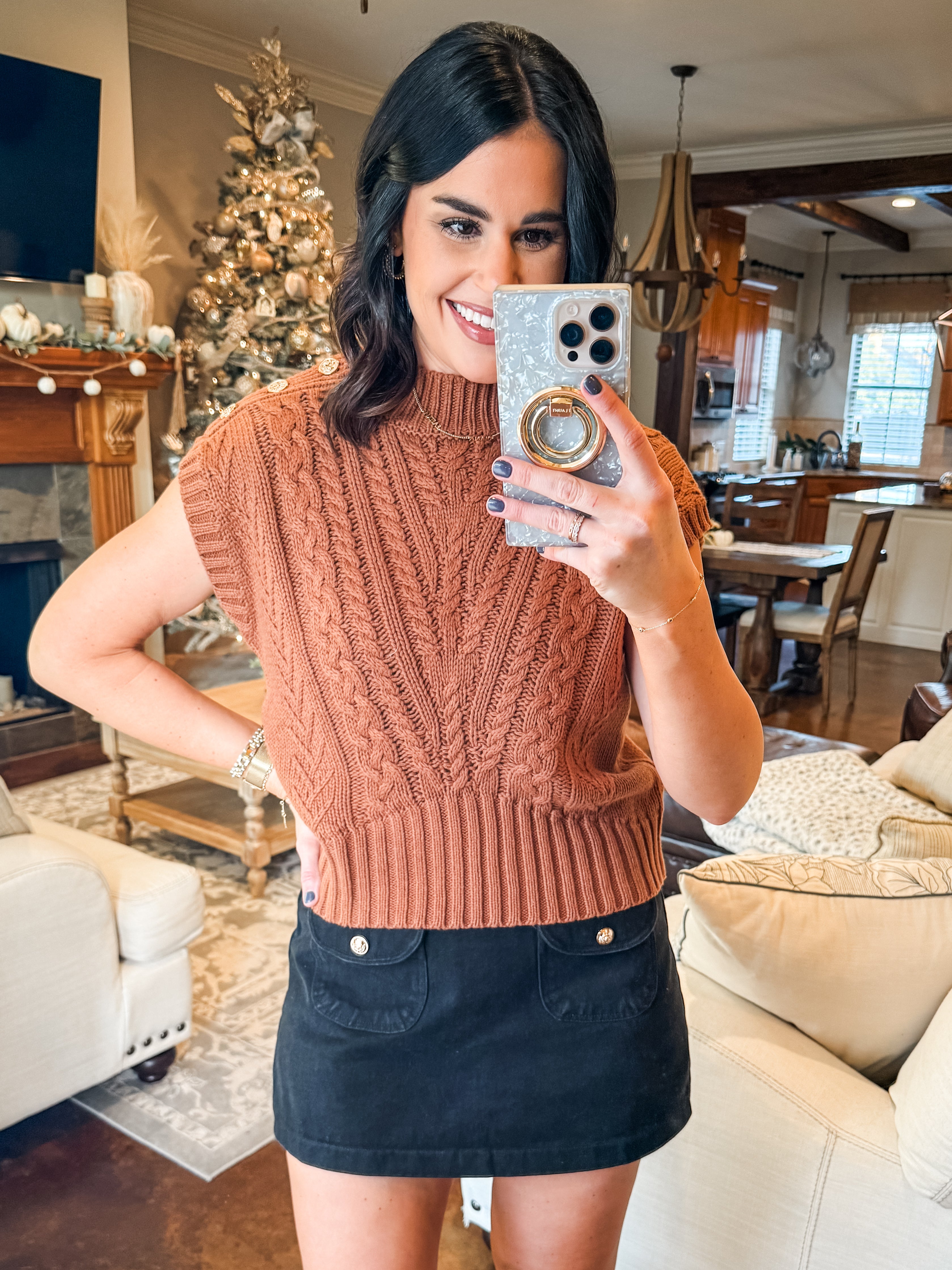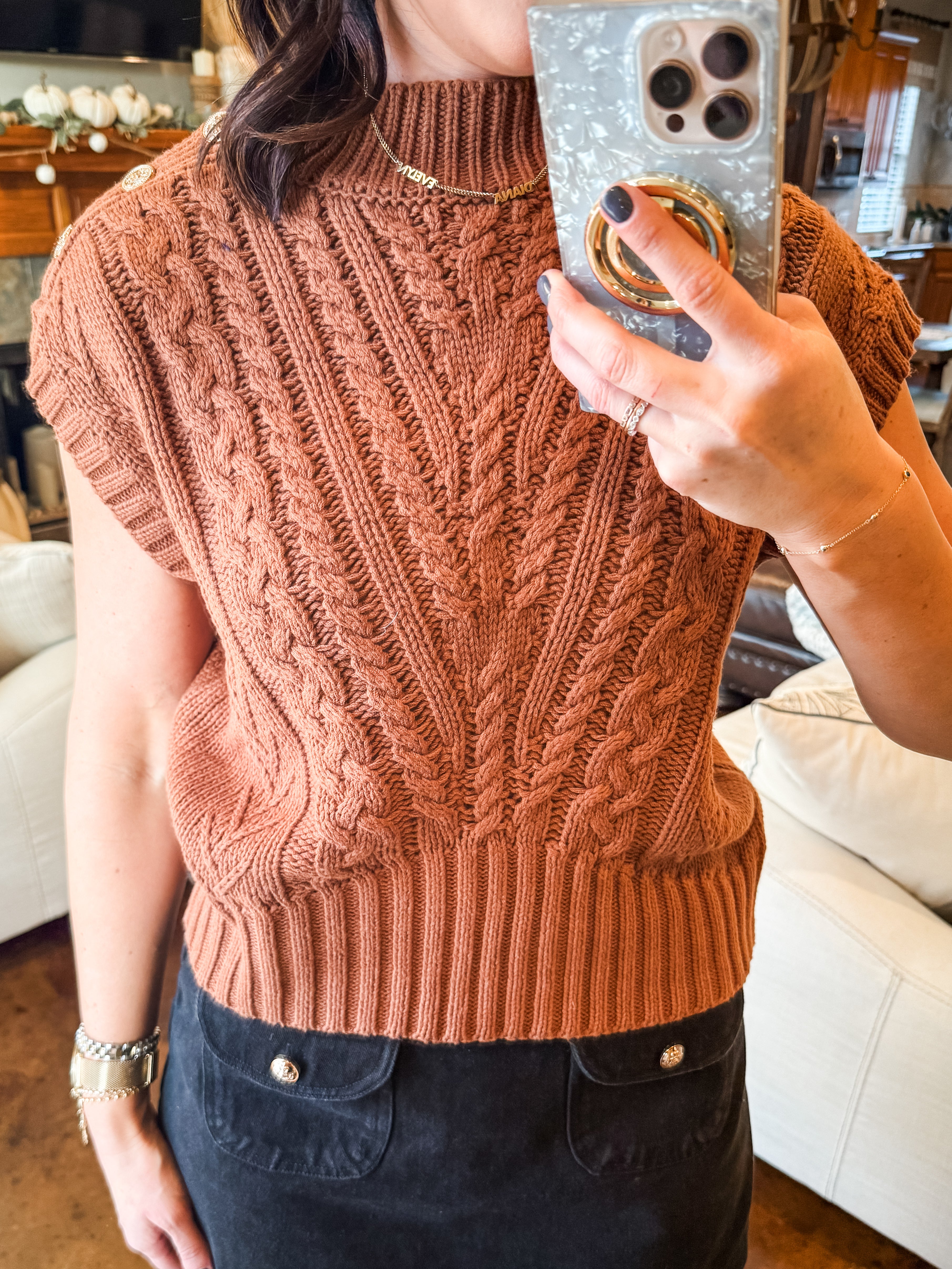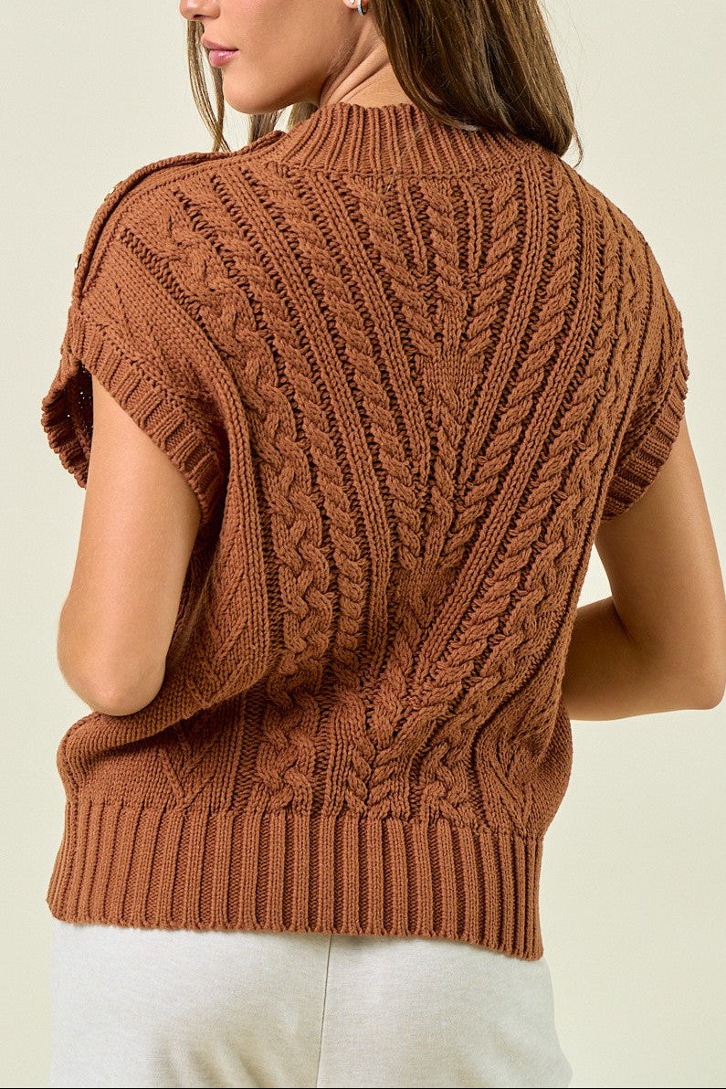 CAMEL CABLE KNIT SWEATER WITH BUTTONS
