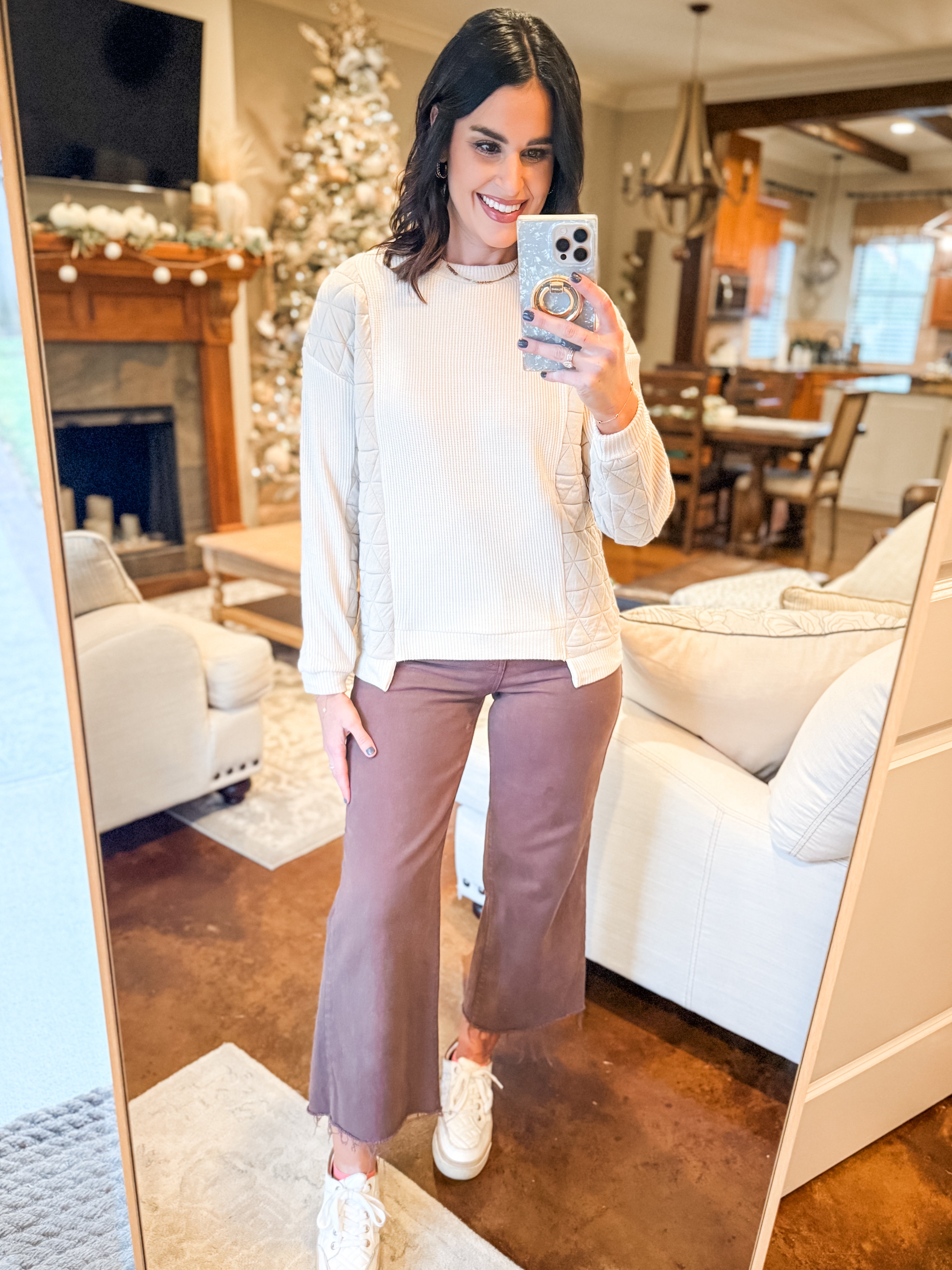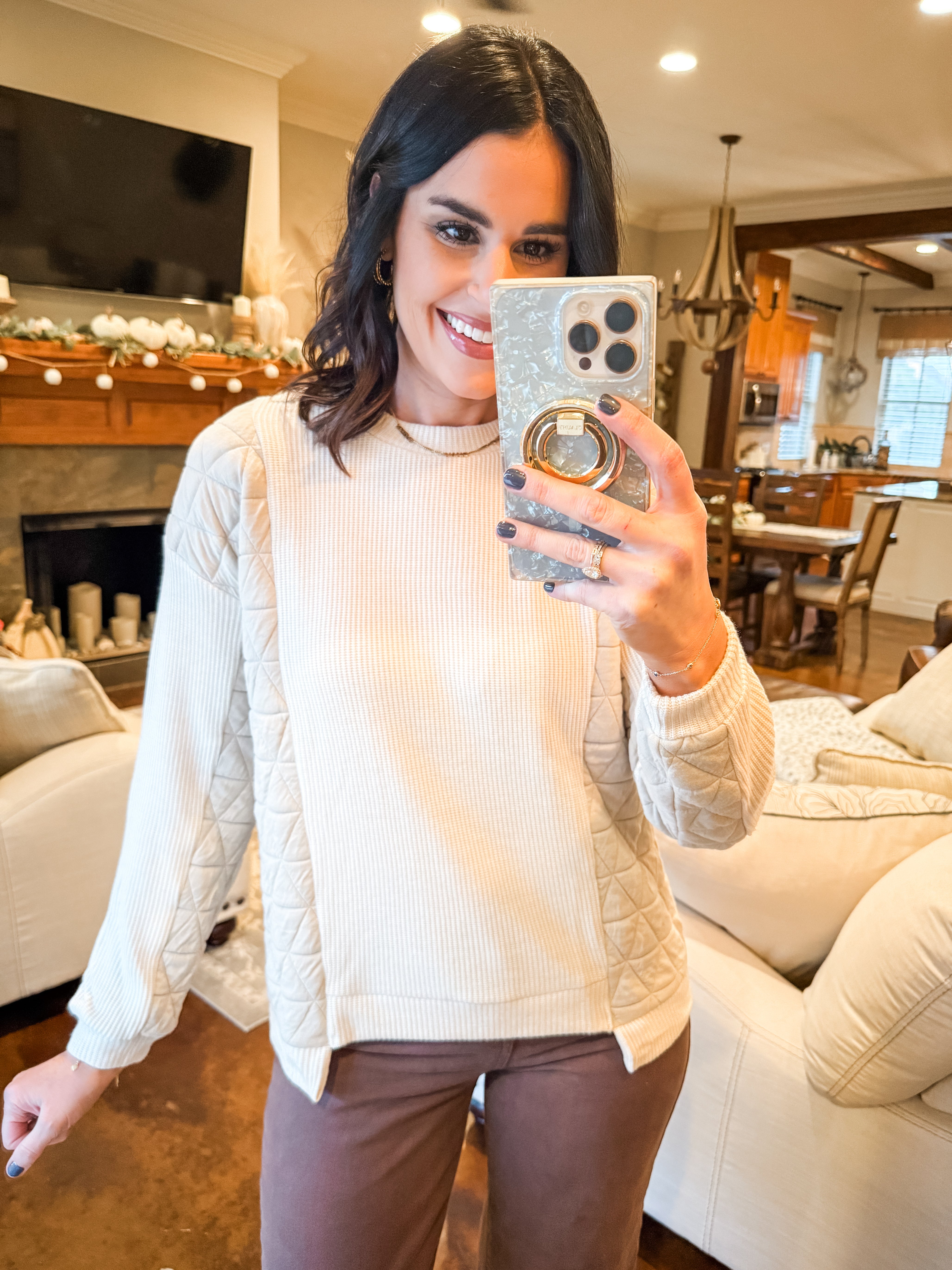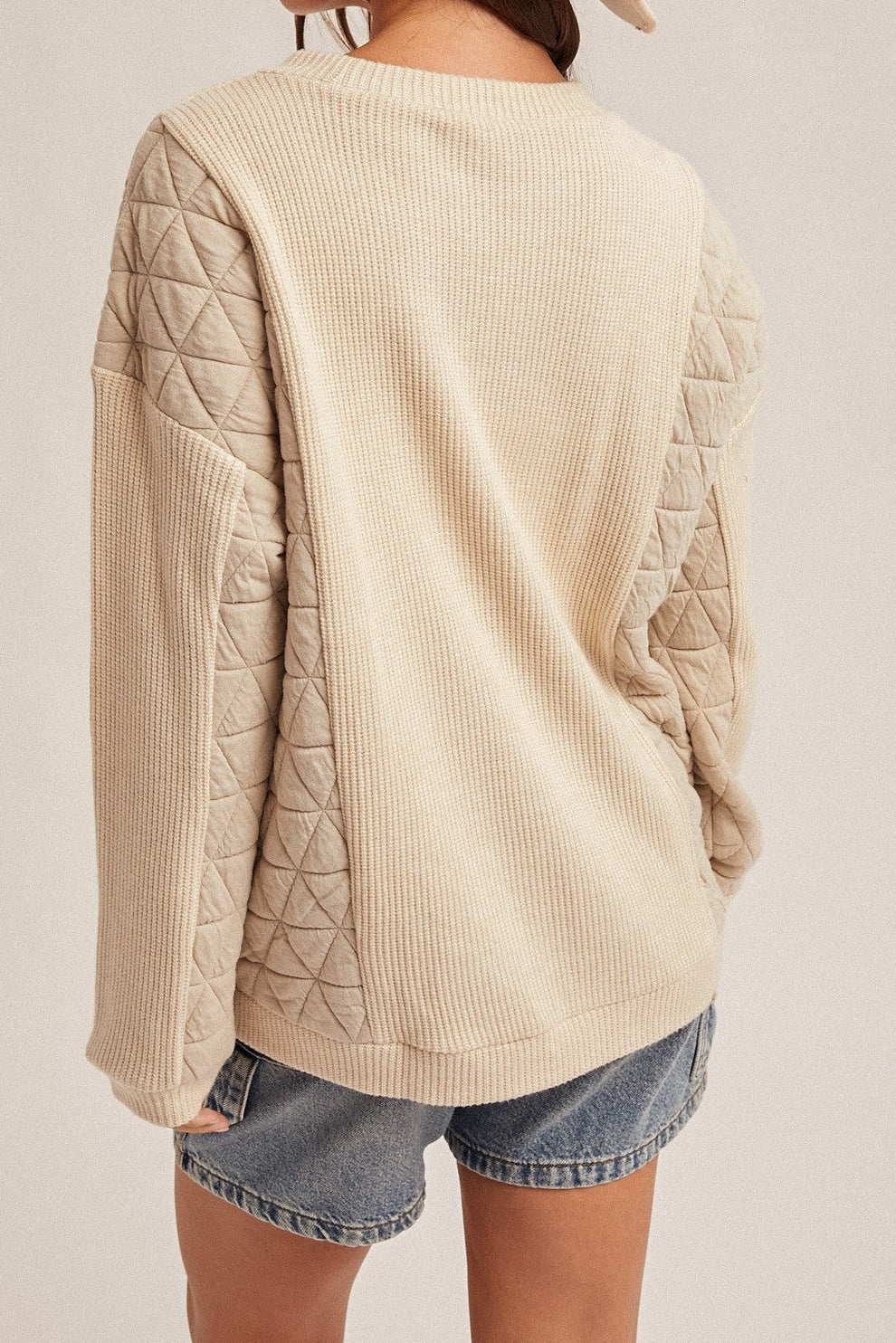 CREAM QUILTED CONTRAST PULLOVER
