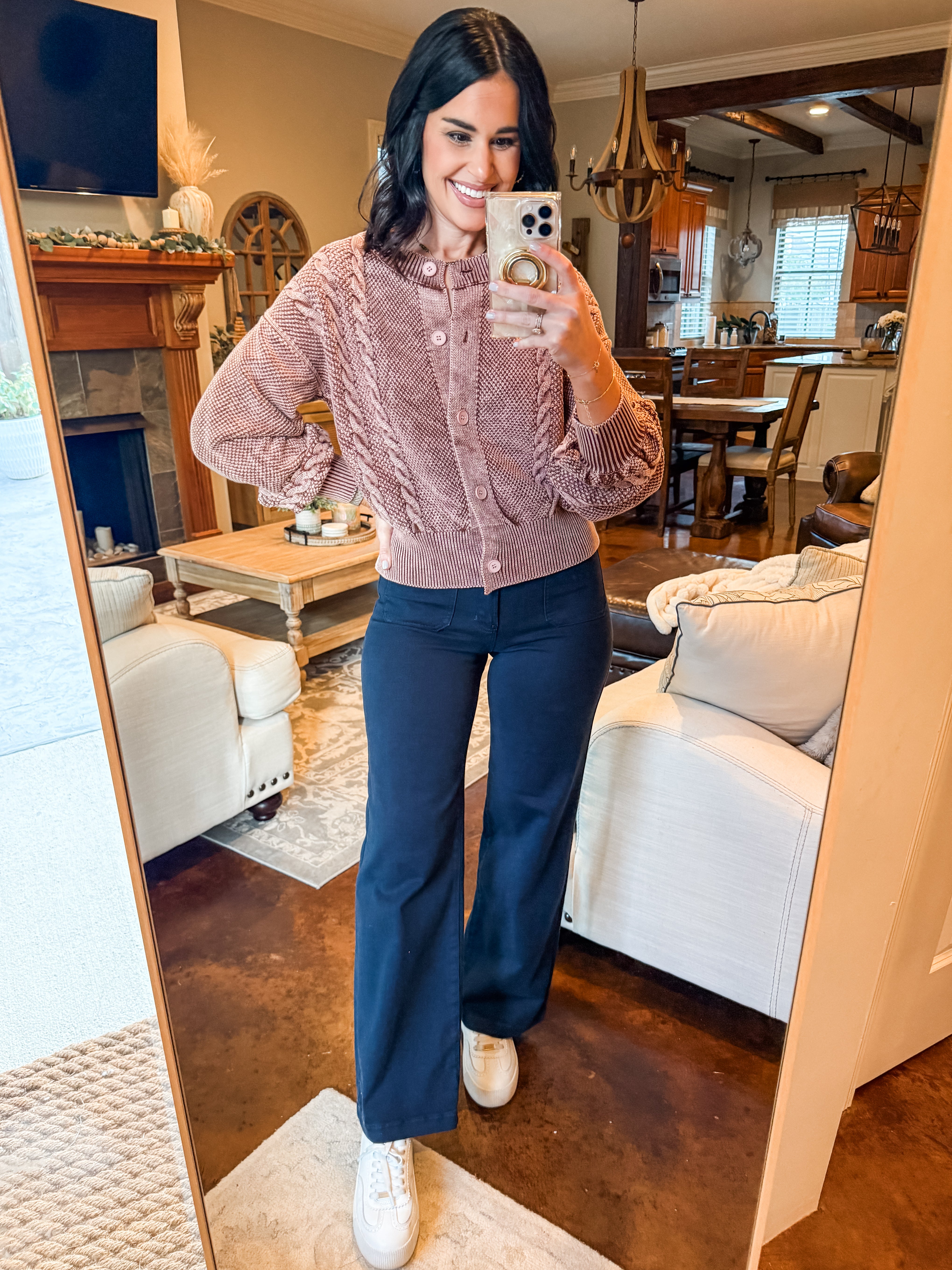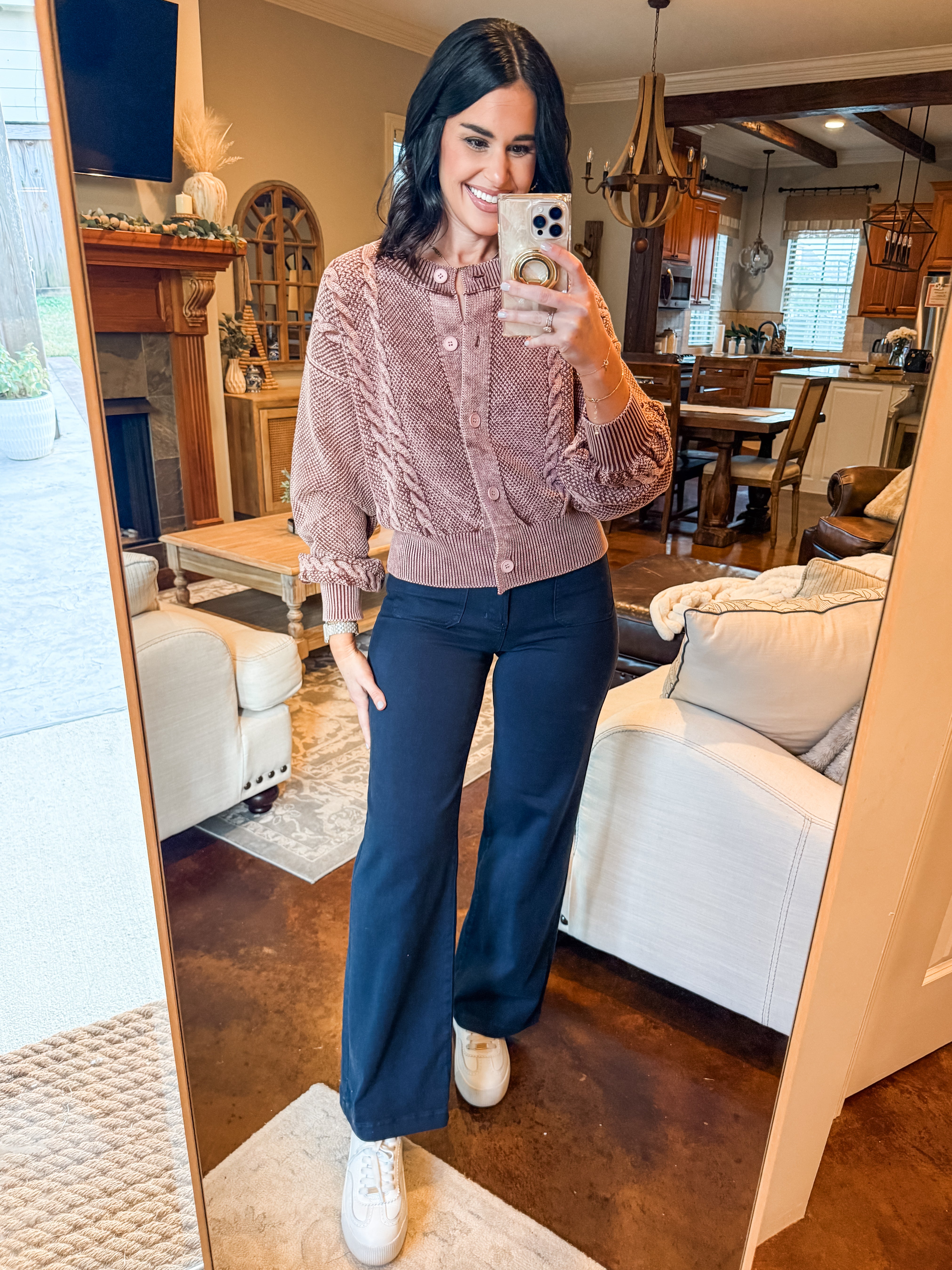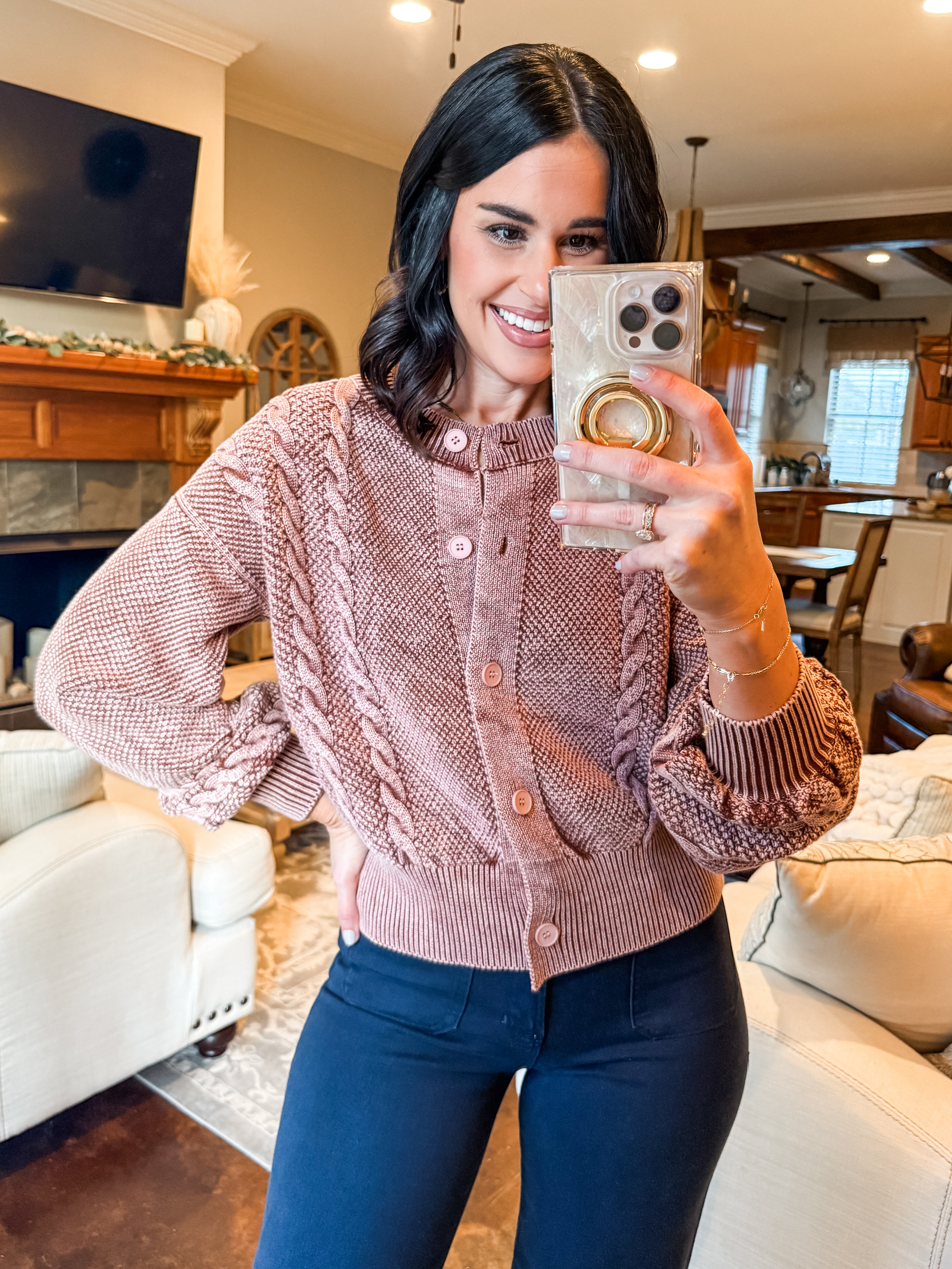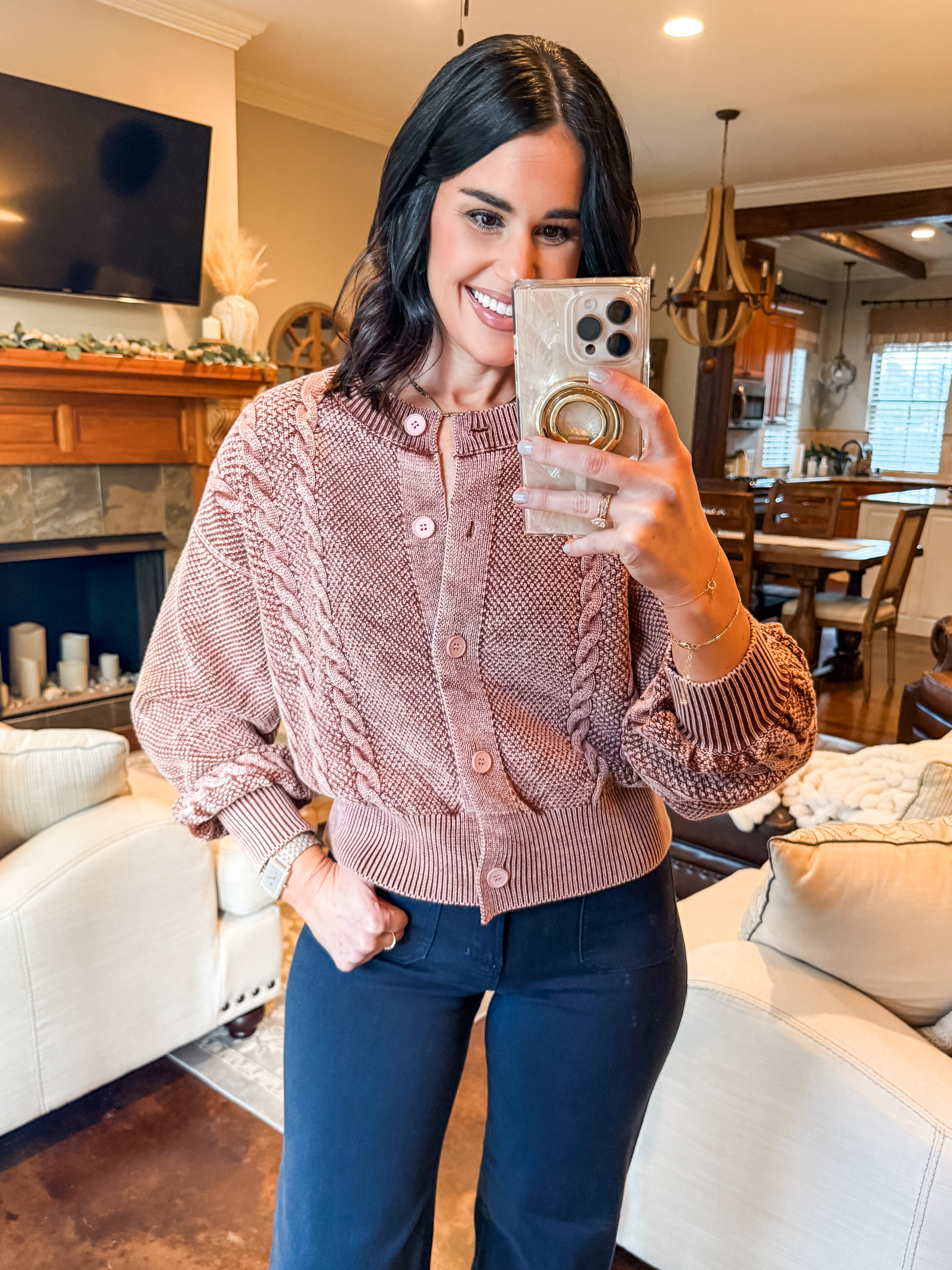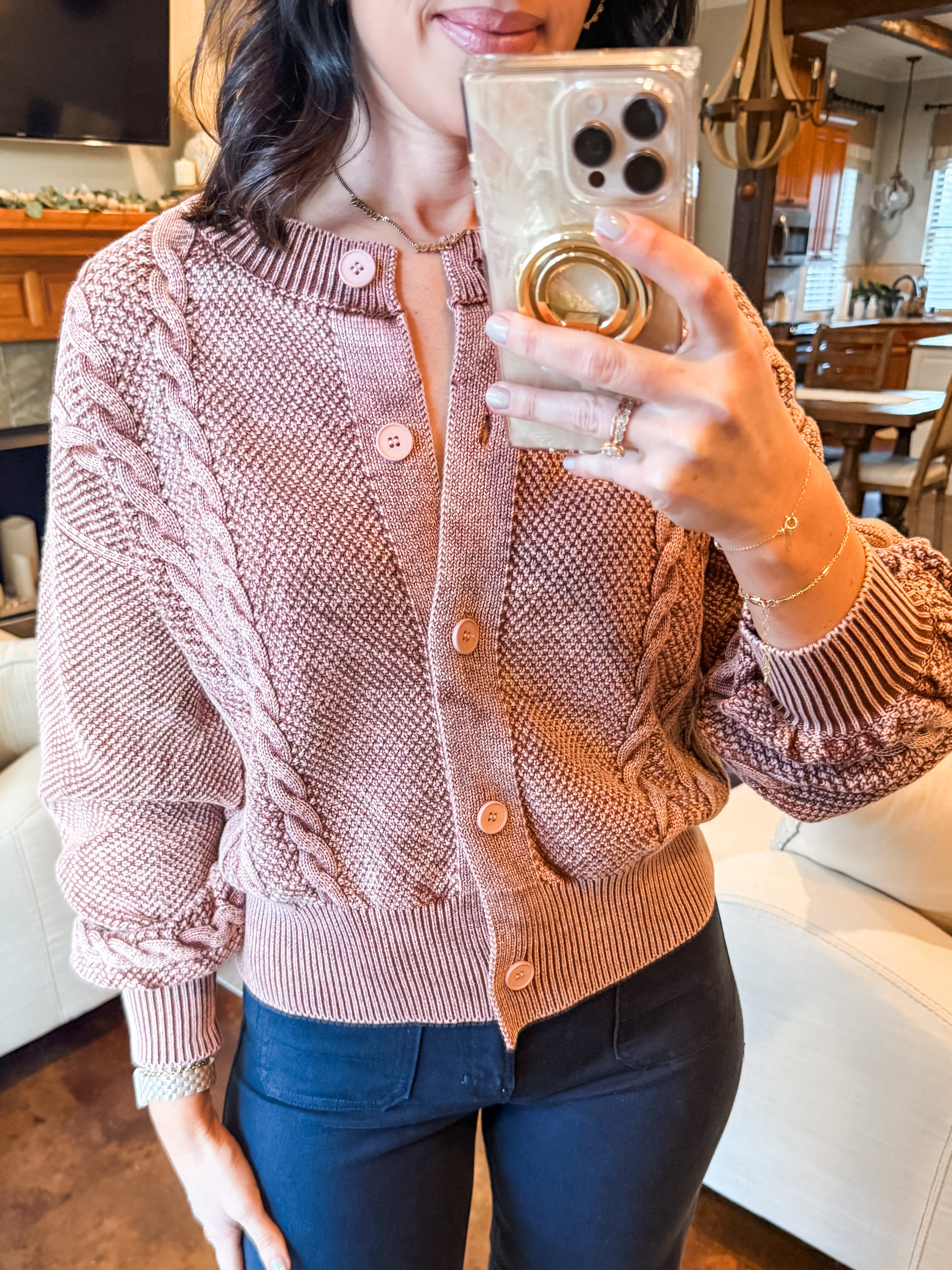 MAUVE CABLE KNIT CARDIGAN