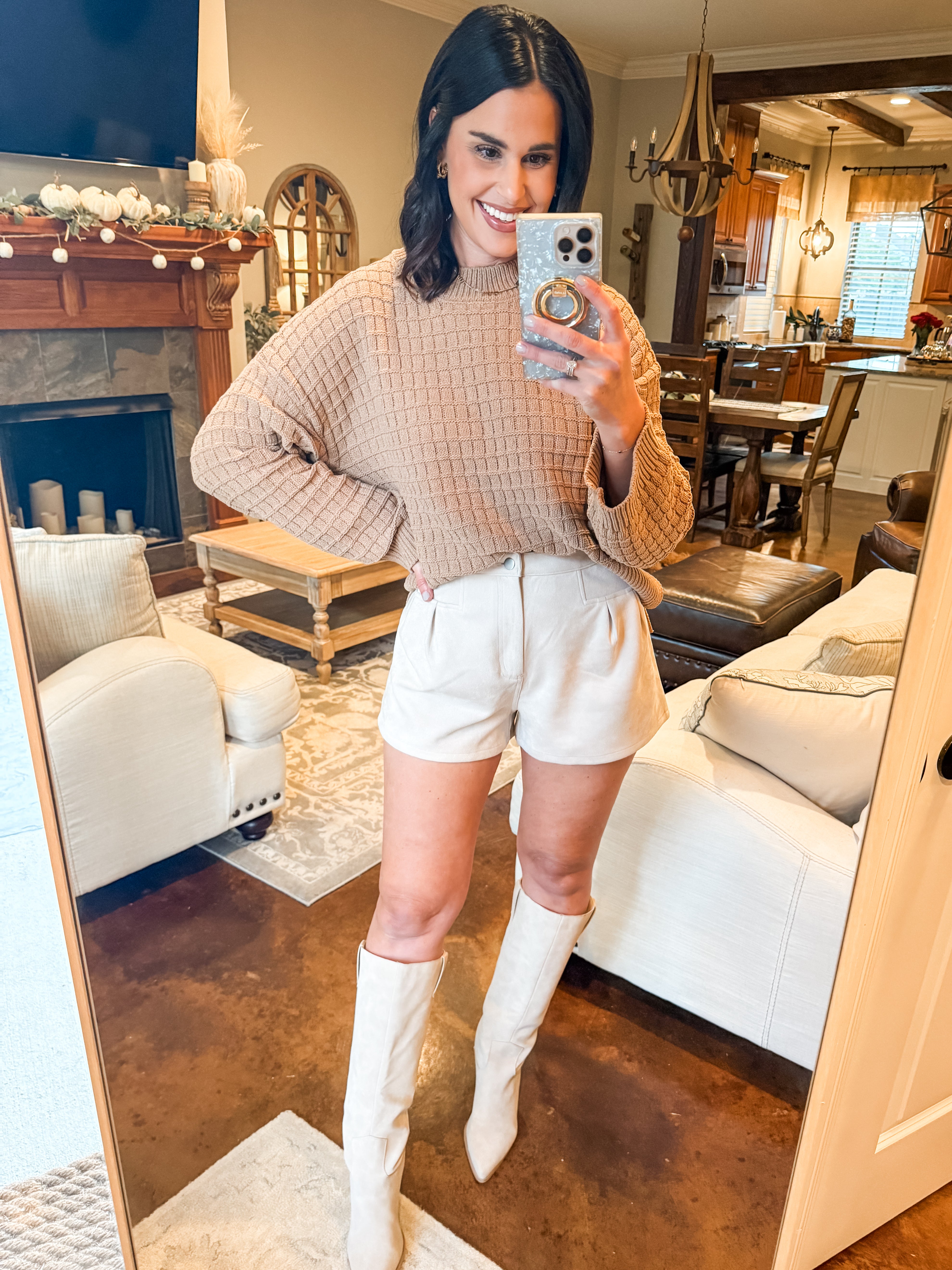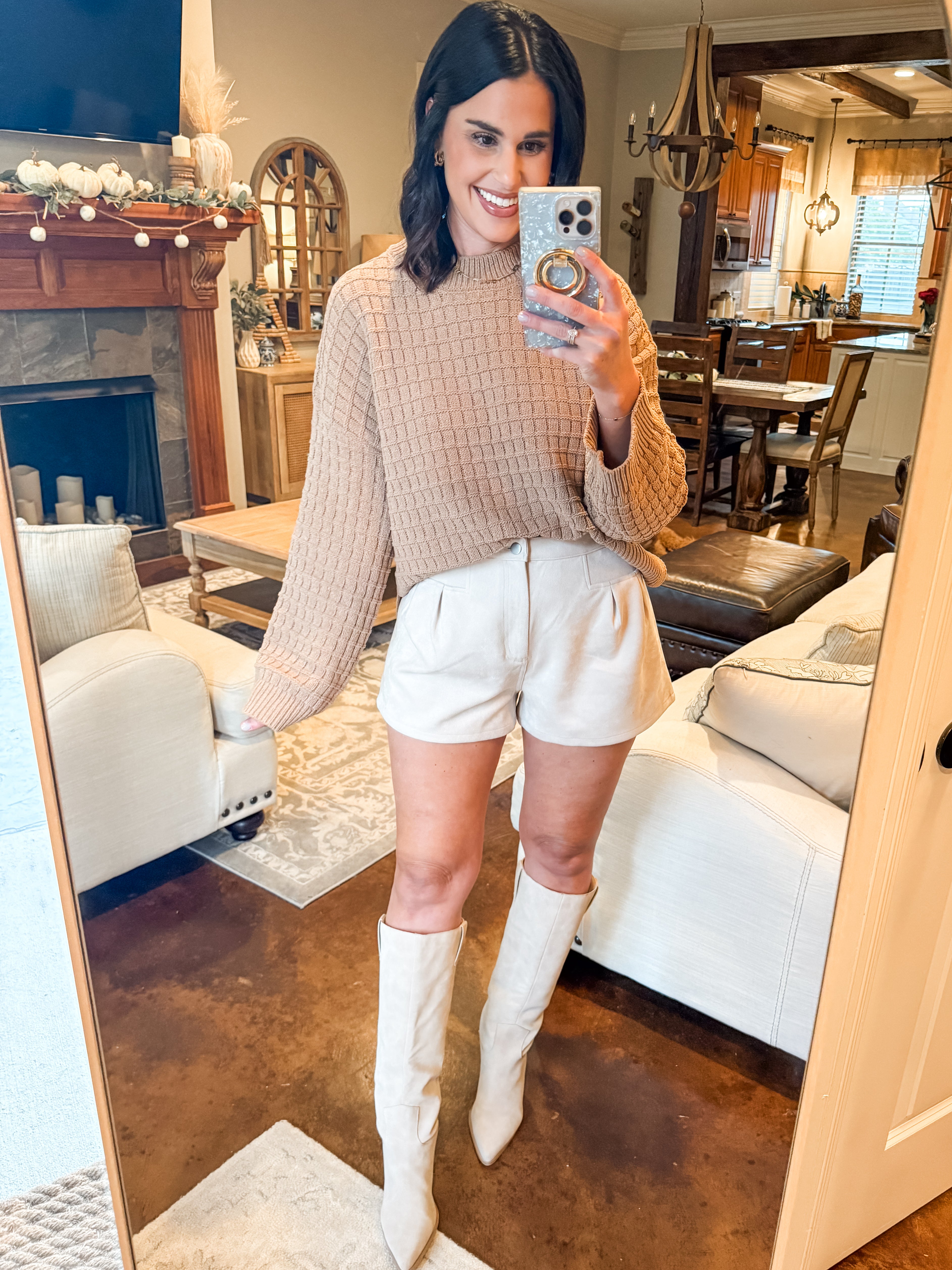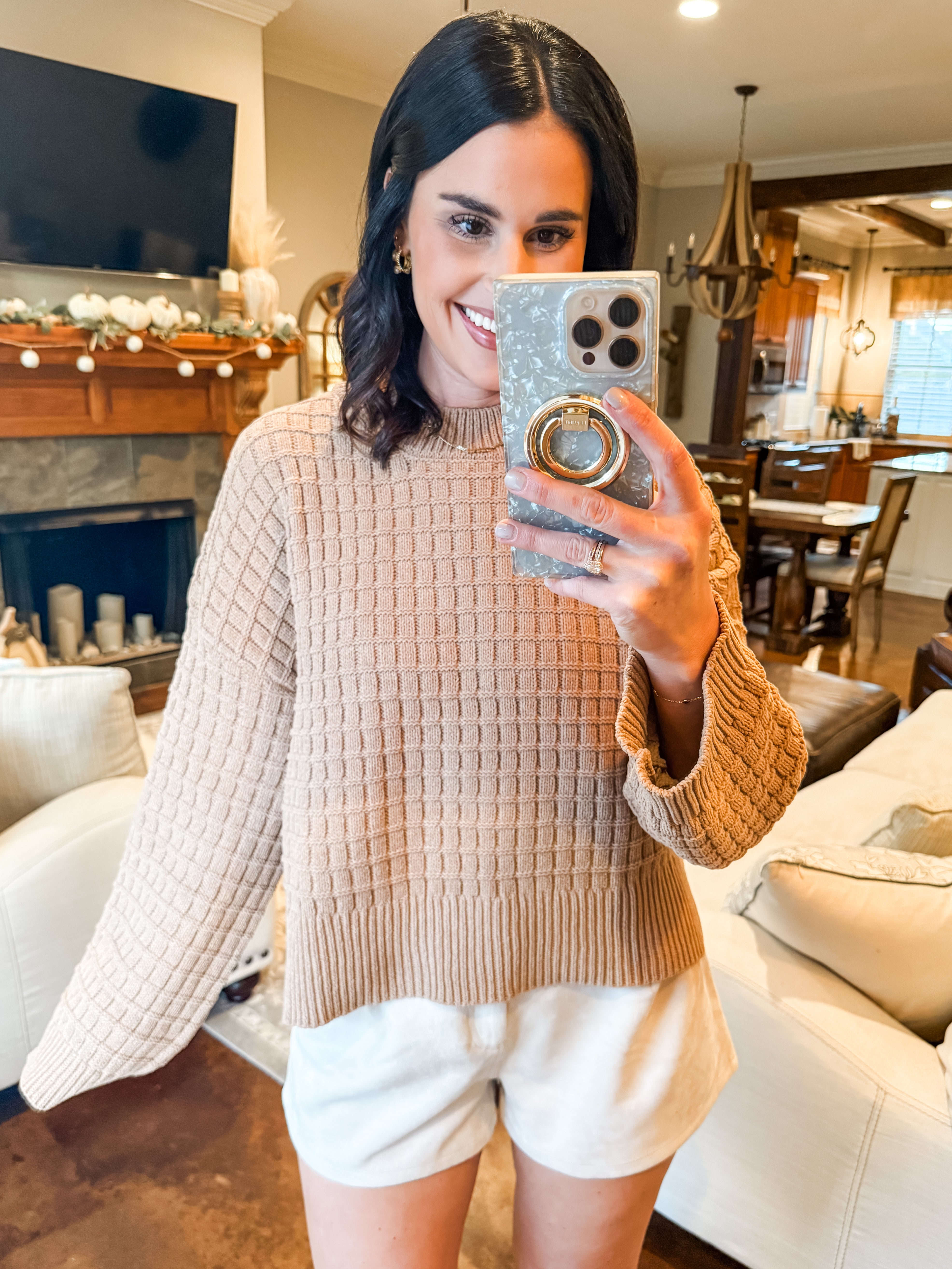 MOCHA LONG SLEEVE TEXTURED SWEATER