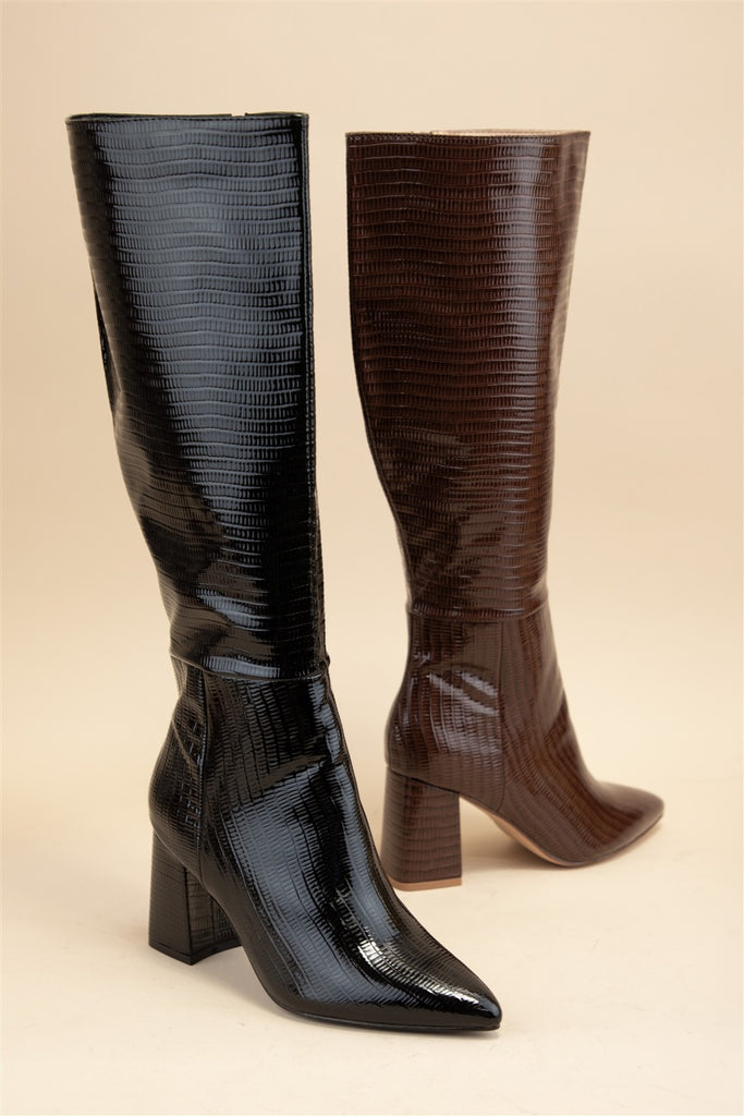 BROWN CROC HEELED BOOT