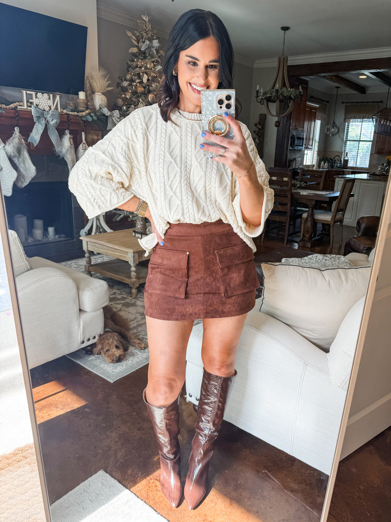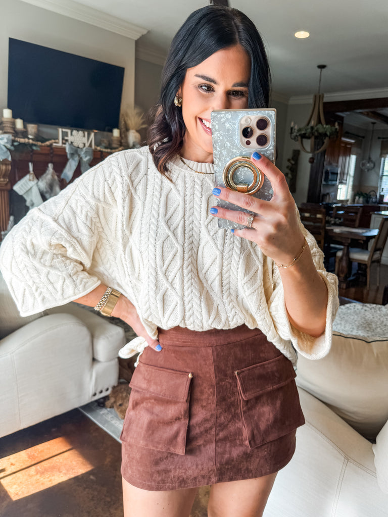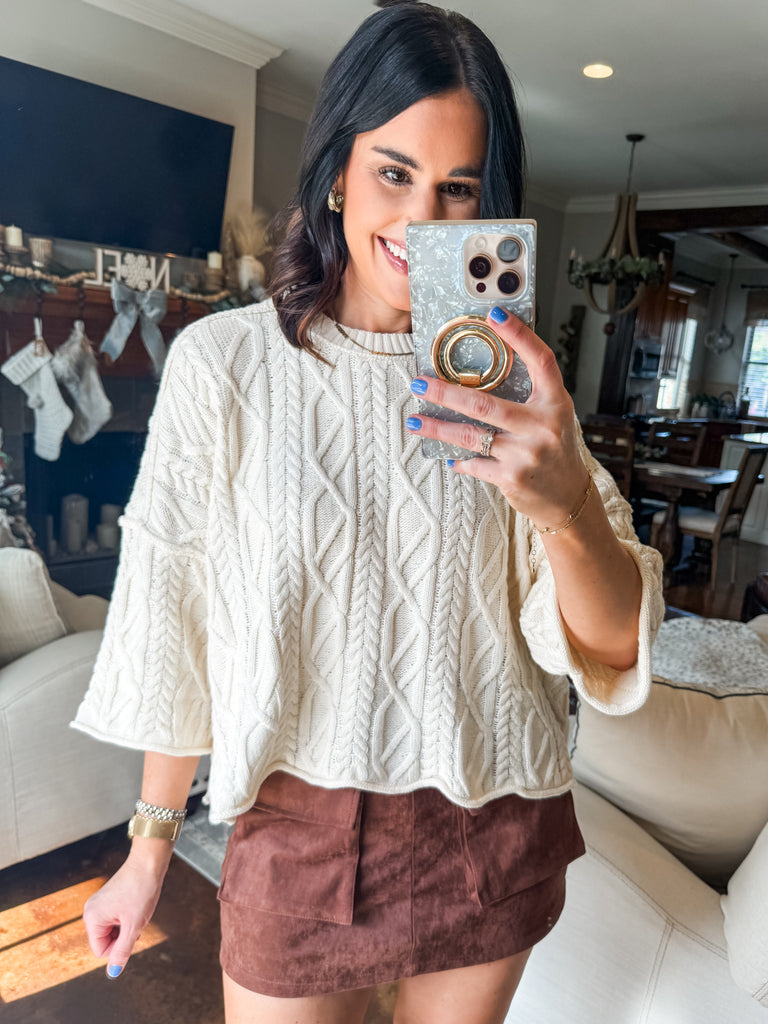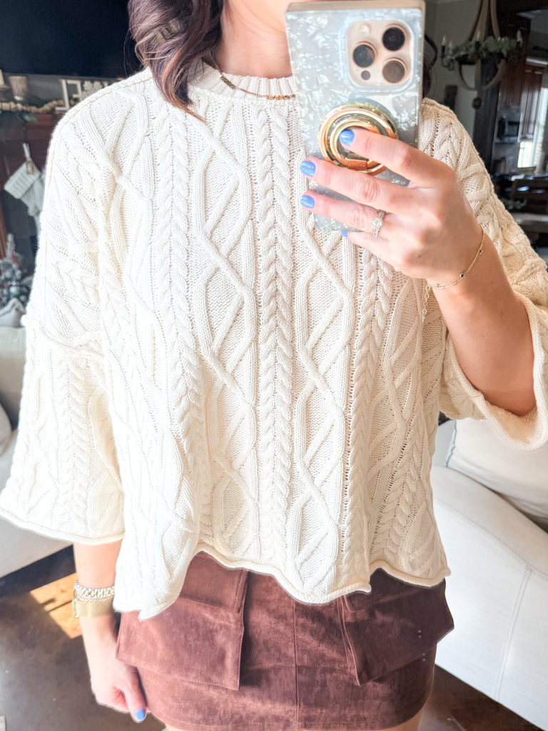 CREAM OVERSIZED CABLE KNIT SWEATER