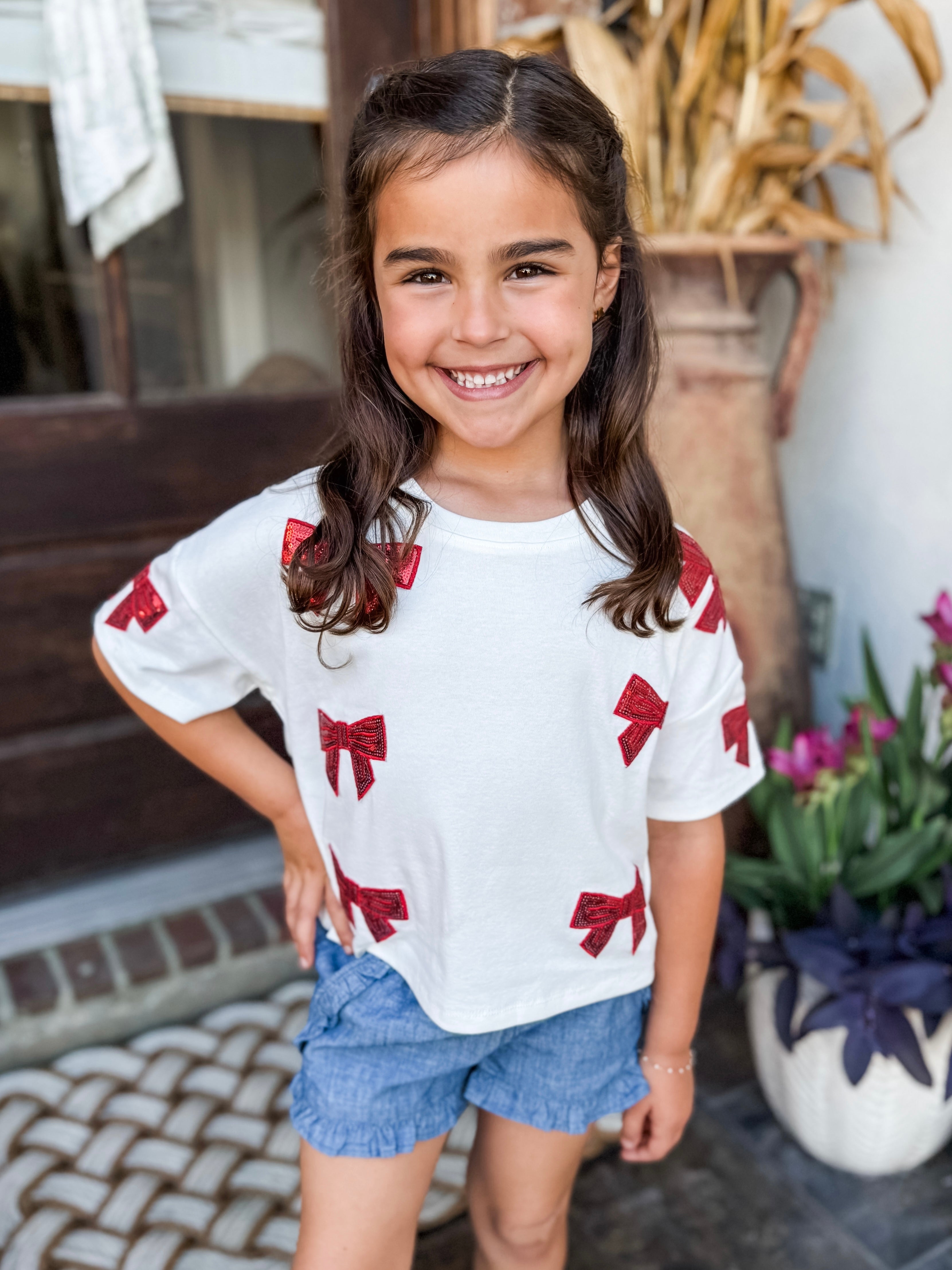 GIRLS Sequin Bow Patched T Shirt