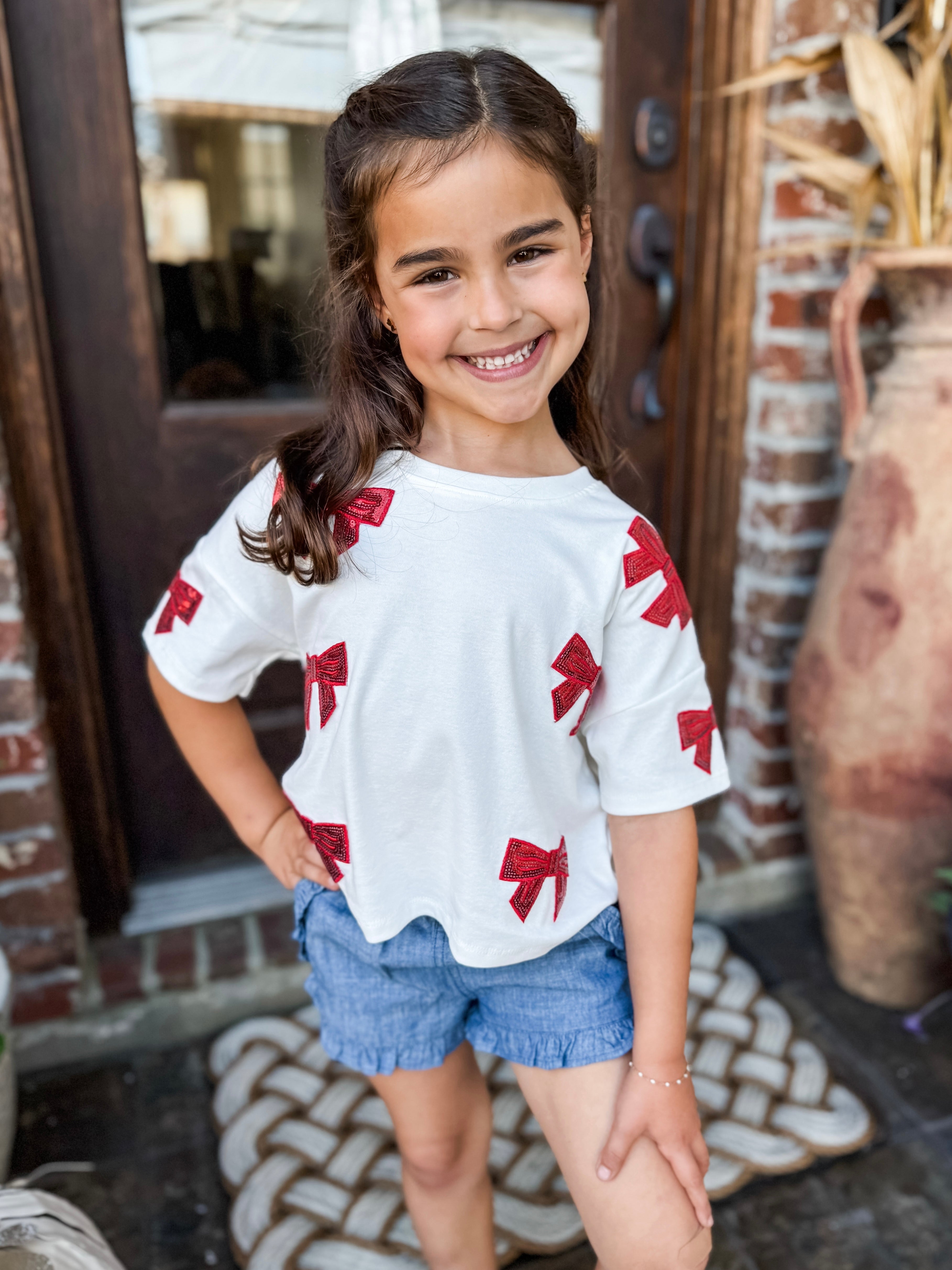 GIRLS RED SEQUIN BOW TOP