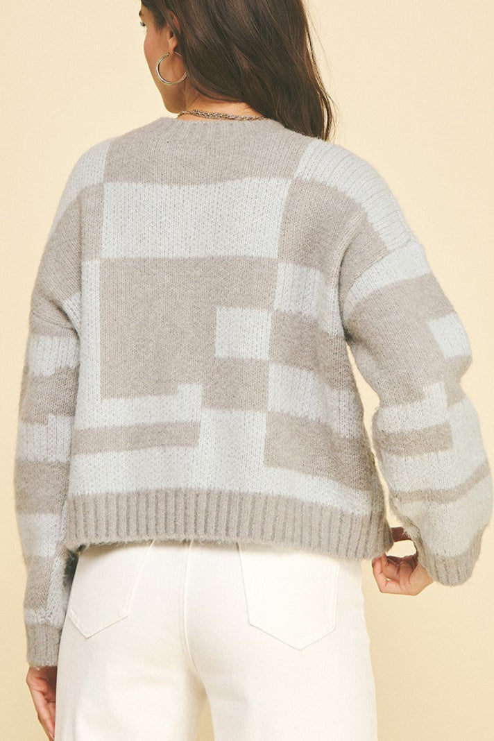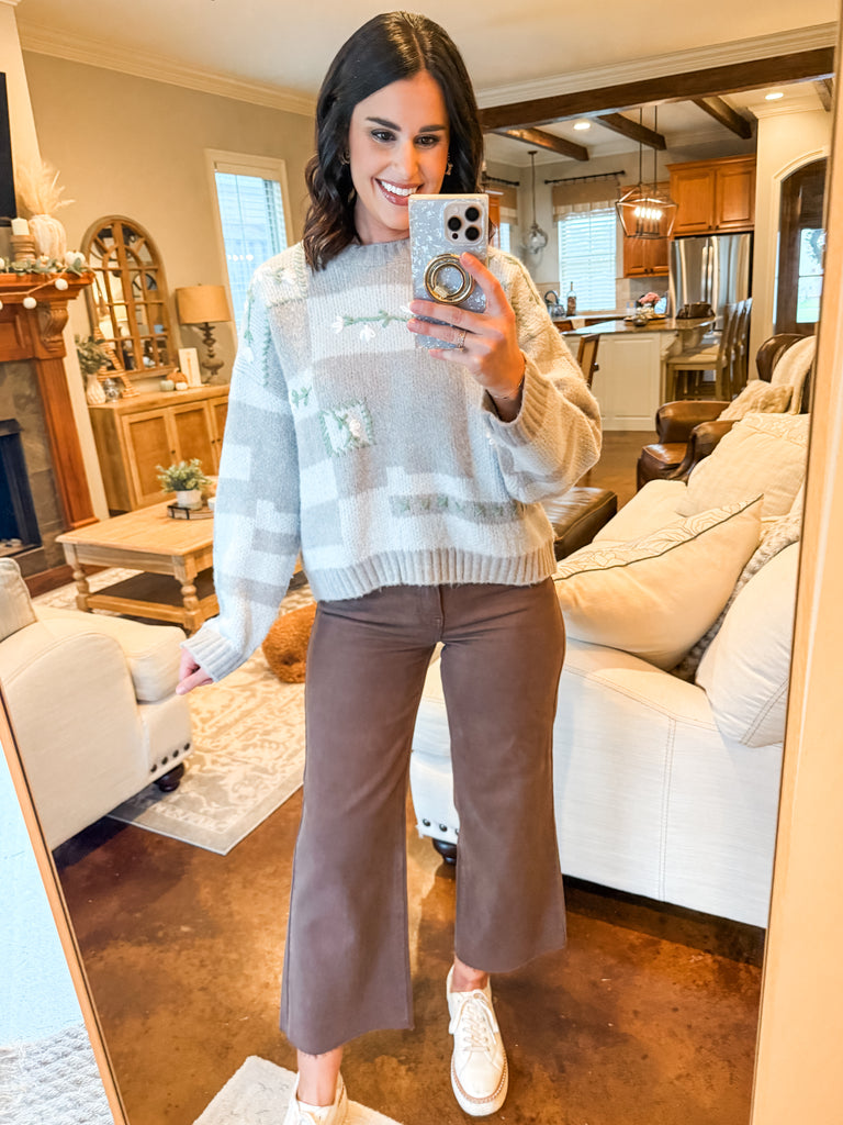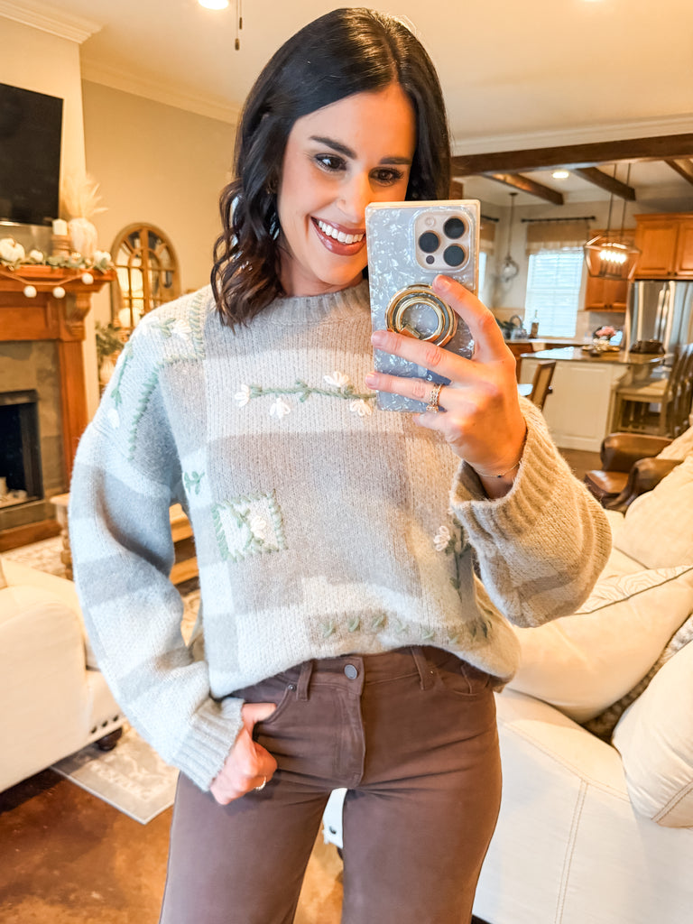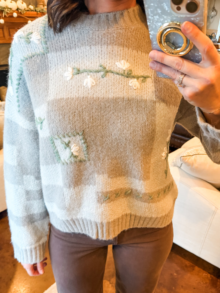 GREY FLORAL EMBROIDERED KNIT SWEATER
