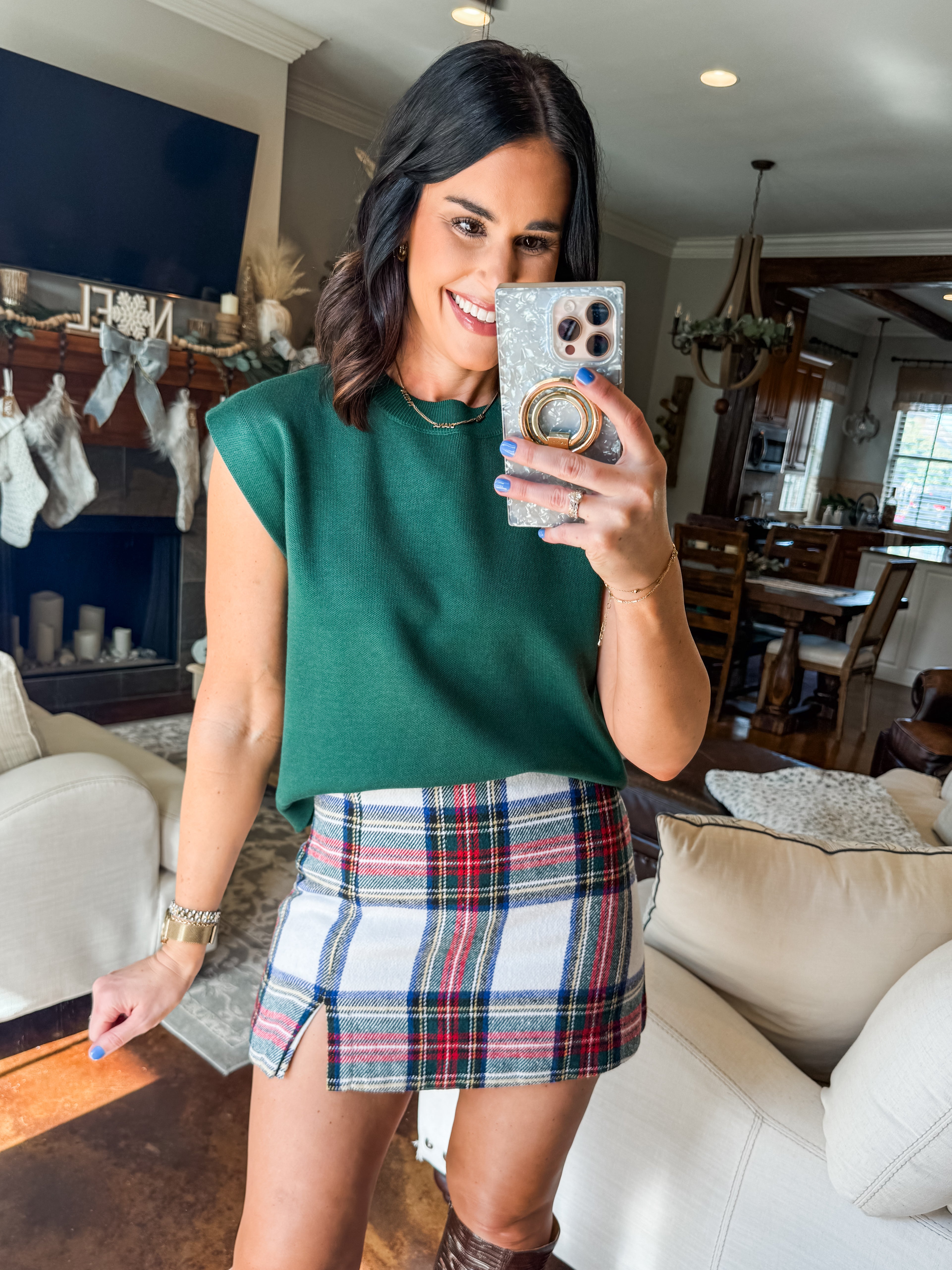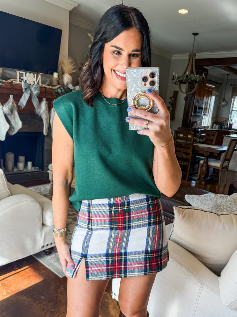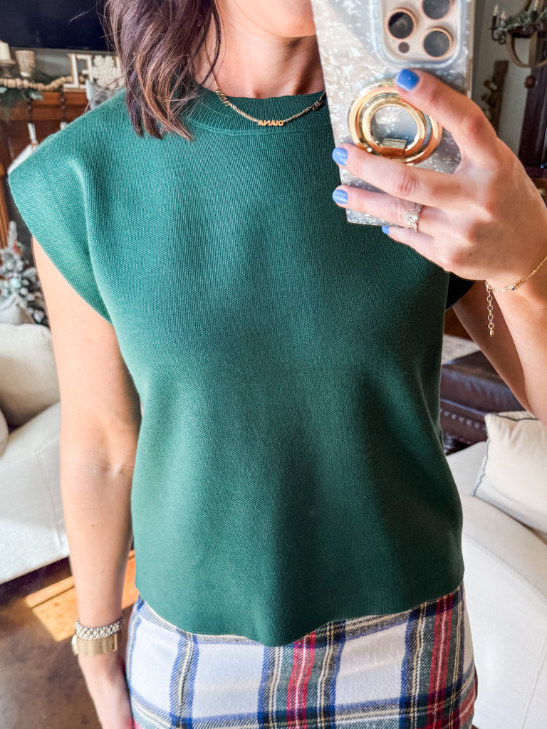 HUNTER GREEN SHORT SLEEVE SWEATER