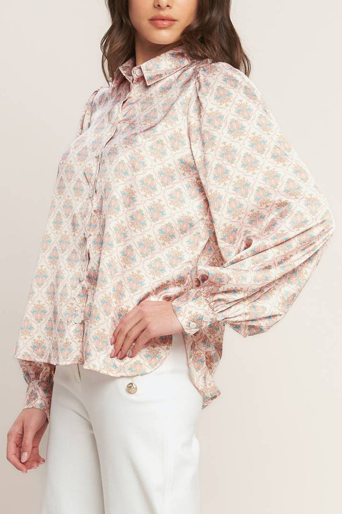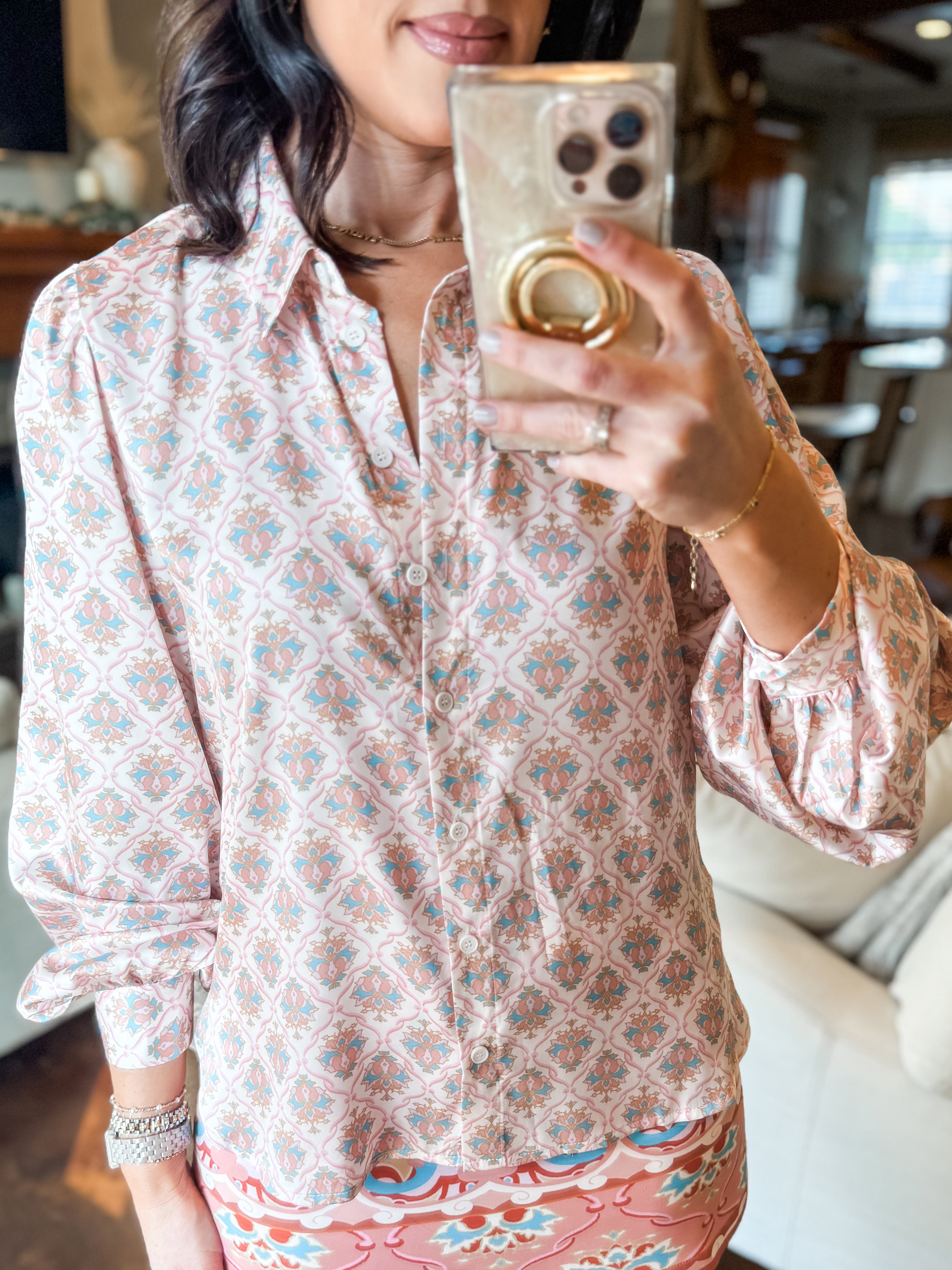 PINK PRINTED SATIN LONG SLEEVE SHIRT