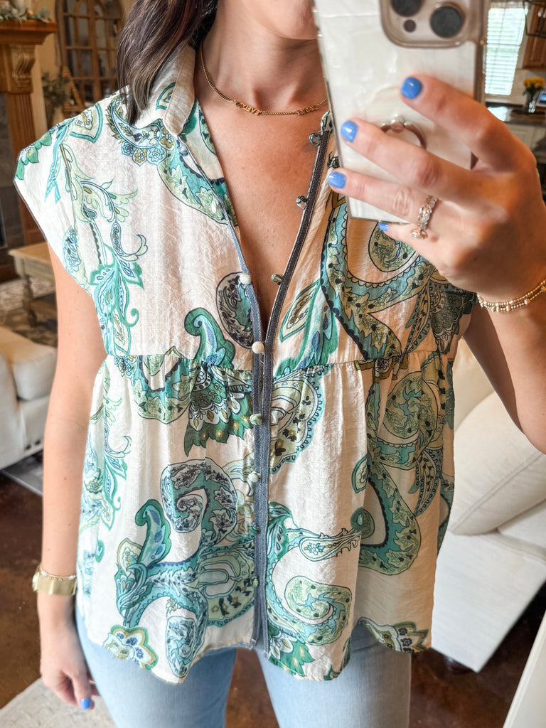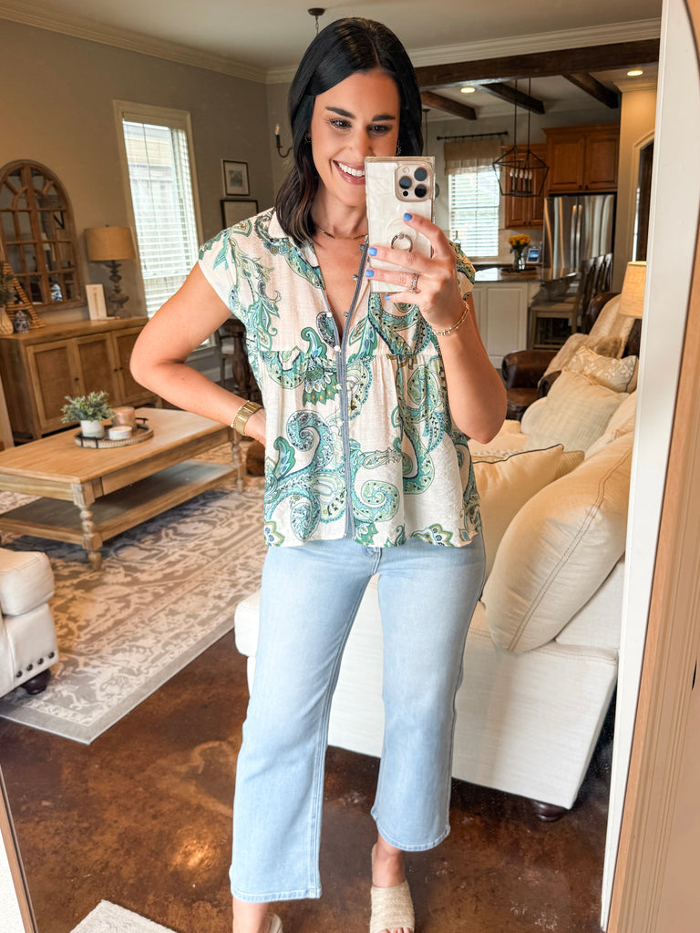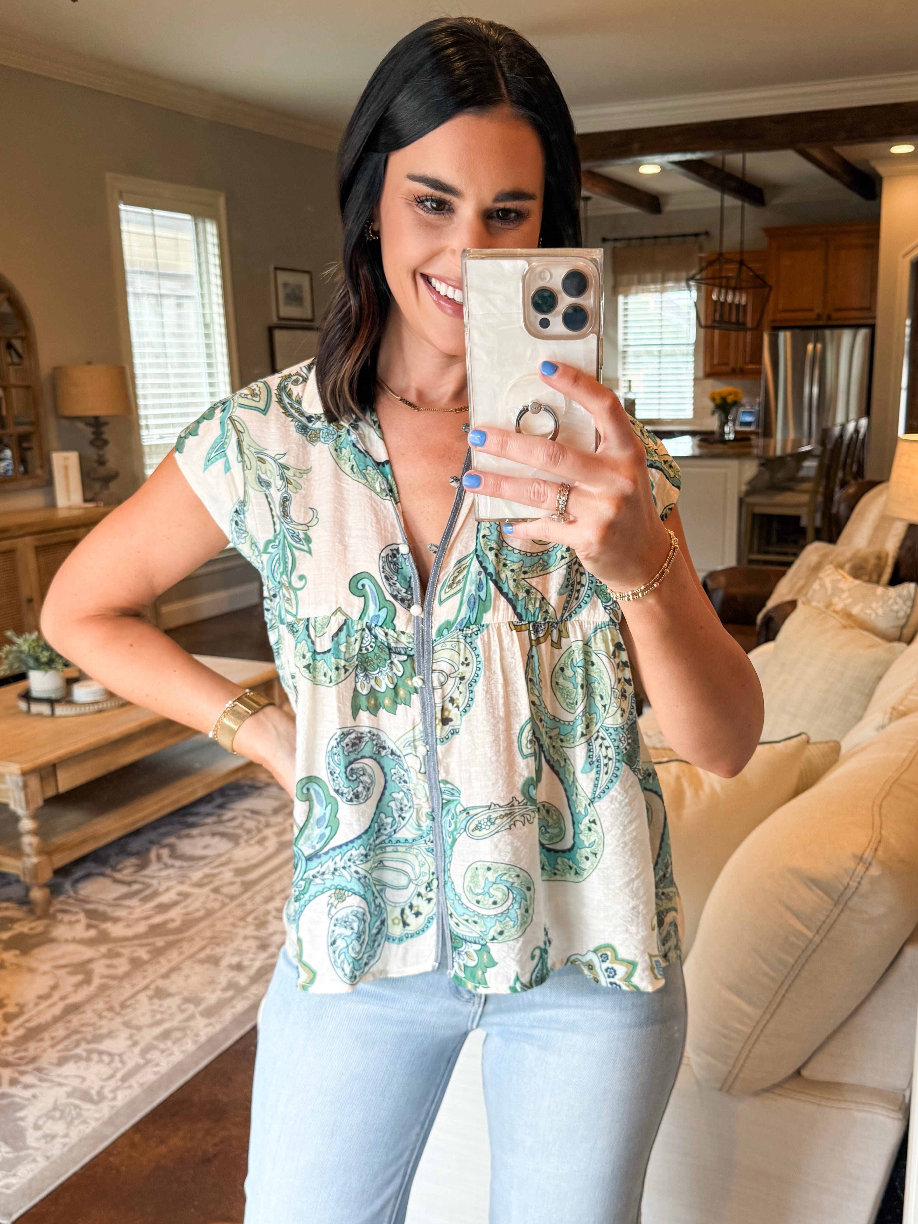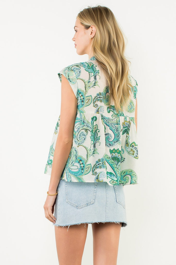 SHORT SLEEVE PAISLEY PRINTED TOP