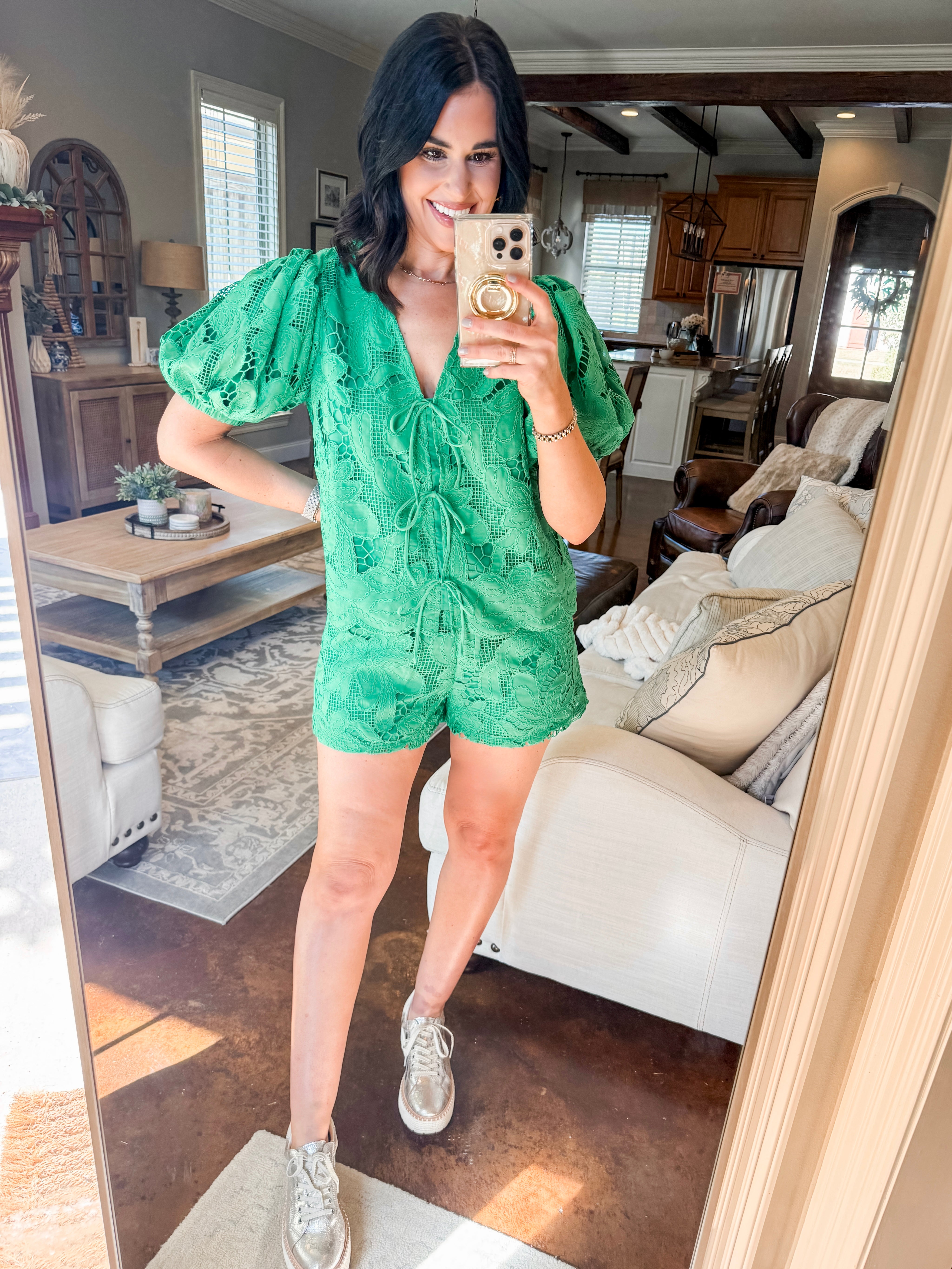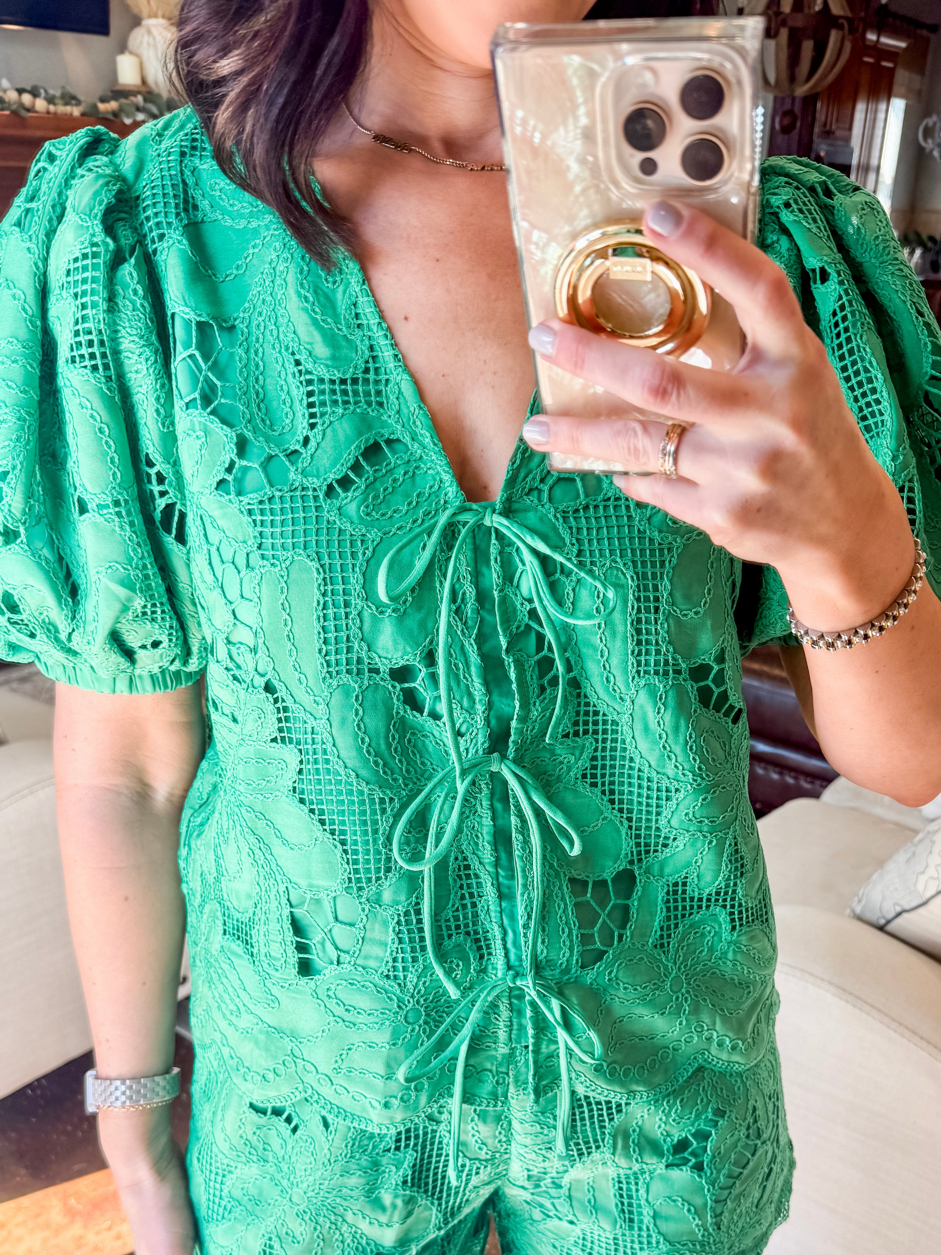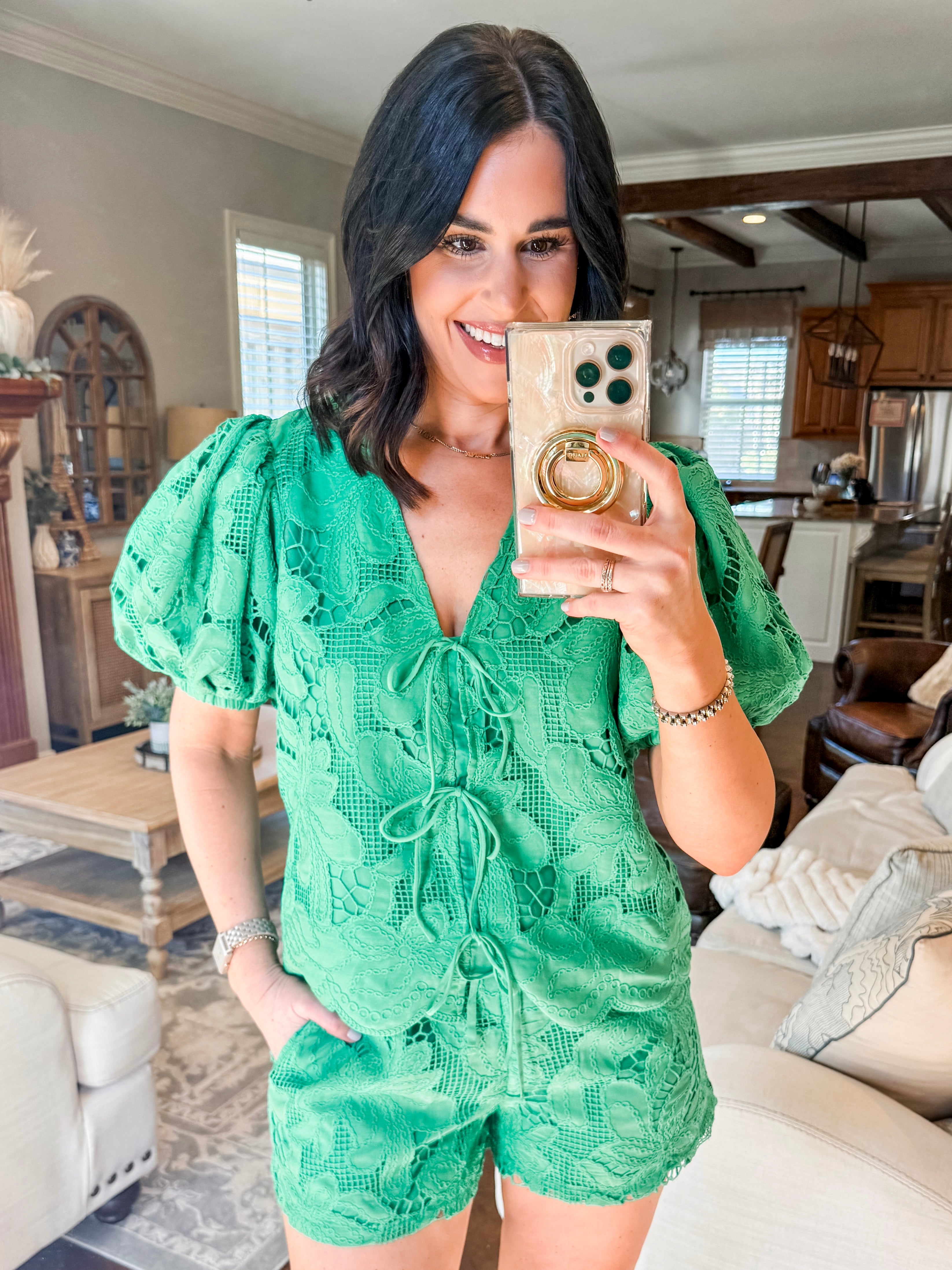 KELLY GREEN EYELET SHORTS